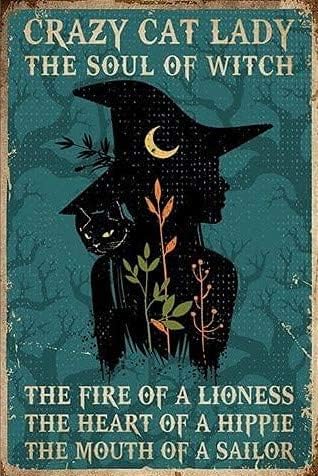 Vintage Crazy Cat Lady The Soul Of Witch Gift Halloween Metal Tin Poster Indoor Outdoor Home Bar Coffee Kitchen Wall Decor Halloween Painting Metal Plate 8x12 Inch