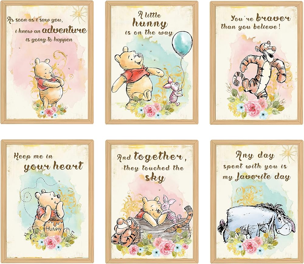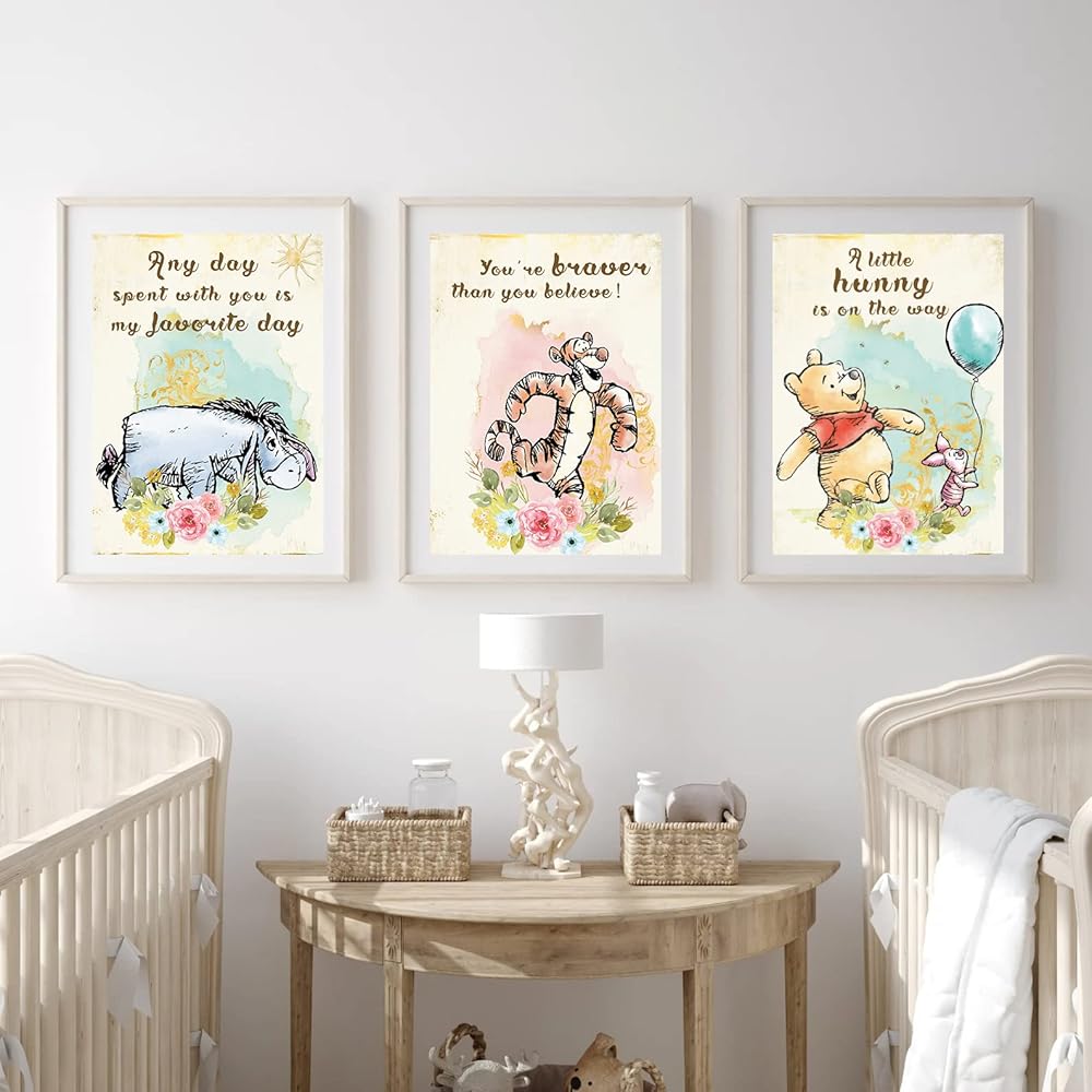 التصميم: ديكور حائط ويني عتيق. اقتباسات ويني الكلاسيكية، ألوان نابضة بالحياة، مطبوعات غير مؤطرة.