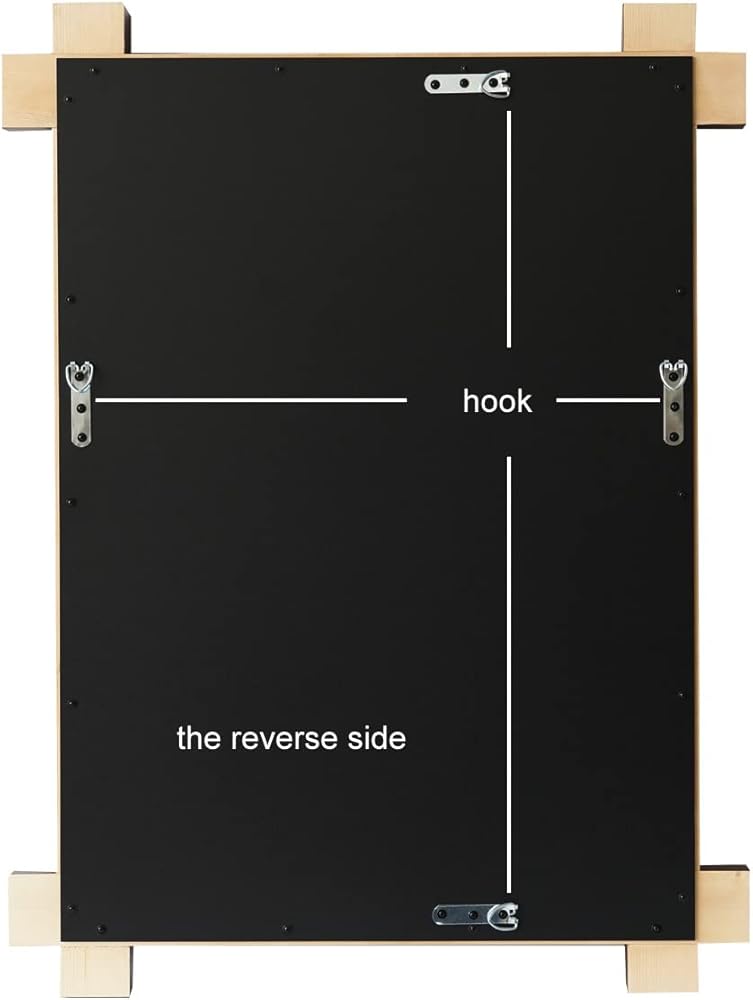 - الأبعاد الخارجية تقريبًا 32 × 24 بوصة؛ حجم المرآة: 24 × 16 بوصة. سمك الإطار الطويل: 1.7 بوصة، سمك الإطار القصير: 1.2 بوصة.