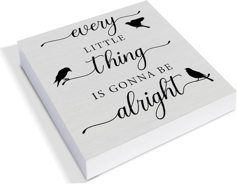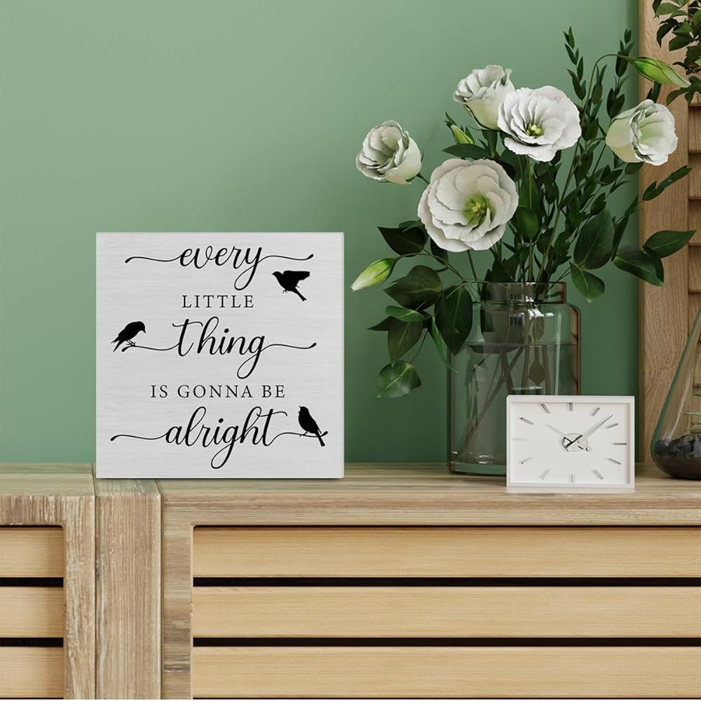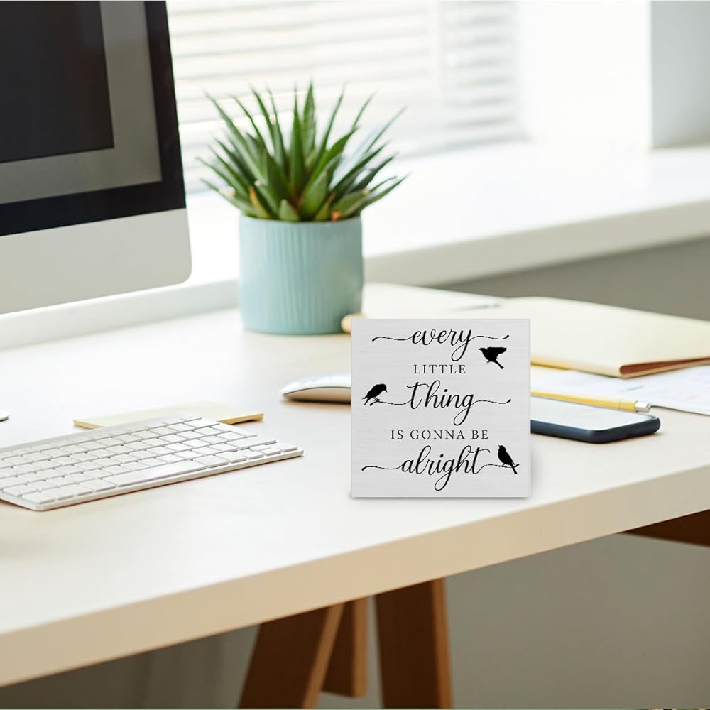 ملهمة صندوق خشبي علامة ديكور مكتب، ريفي كل شيء صغير سيكون على ما يرام كتلة خشبية تسجيل المنزل مكتب منضدية الجرف مكتب الديكور، 5 × 5 بوصة