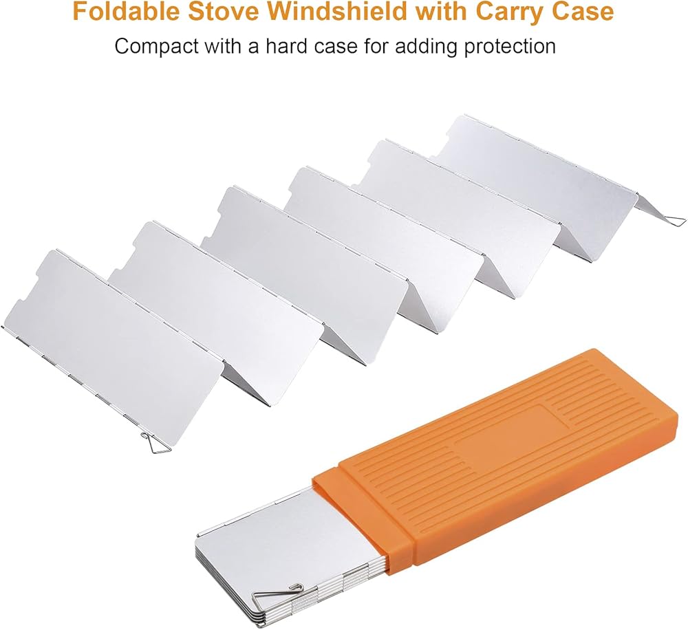 • 【Portable with Hard-Shell Carry Case】Made of lightweight anodized aluminum, the backpacking stove windscreen won't weigh down your bag. Included carry case add a great protection from scratched. The camping stove windscreen can fold flat for packing, perfect for outdoor camping, fishing, hiking, trekking, etc.
