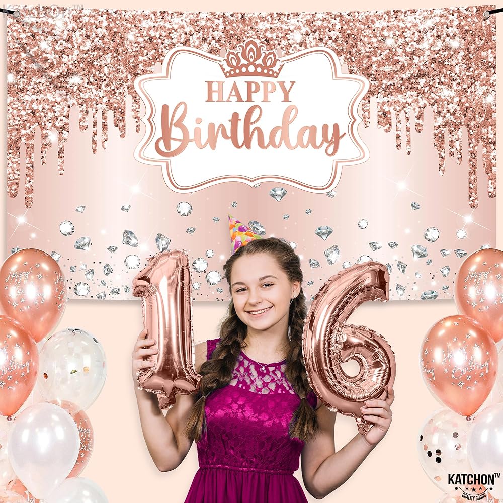 - لافتة عيد ميلاد بلون ذهبي وردي لتزيين عيد ميلاد سعيد بلون ذهبي وردي عيار 16