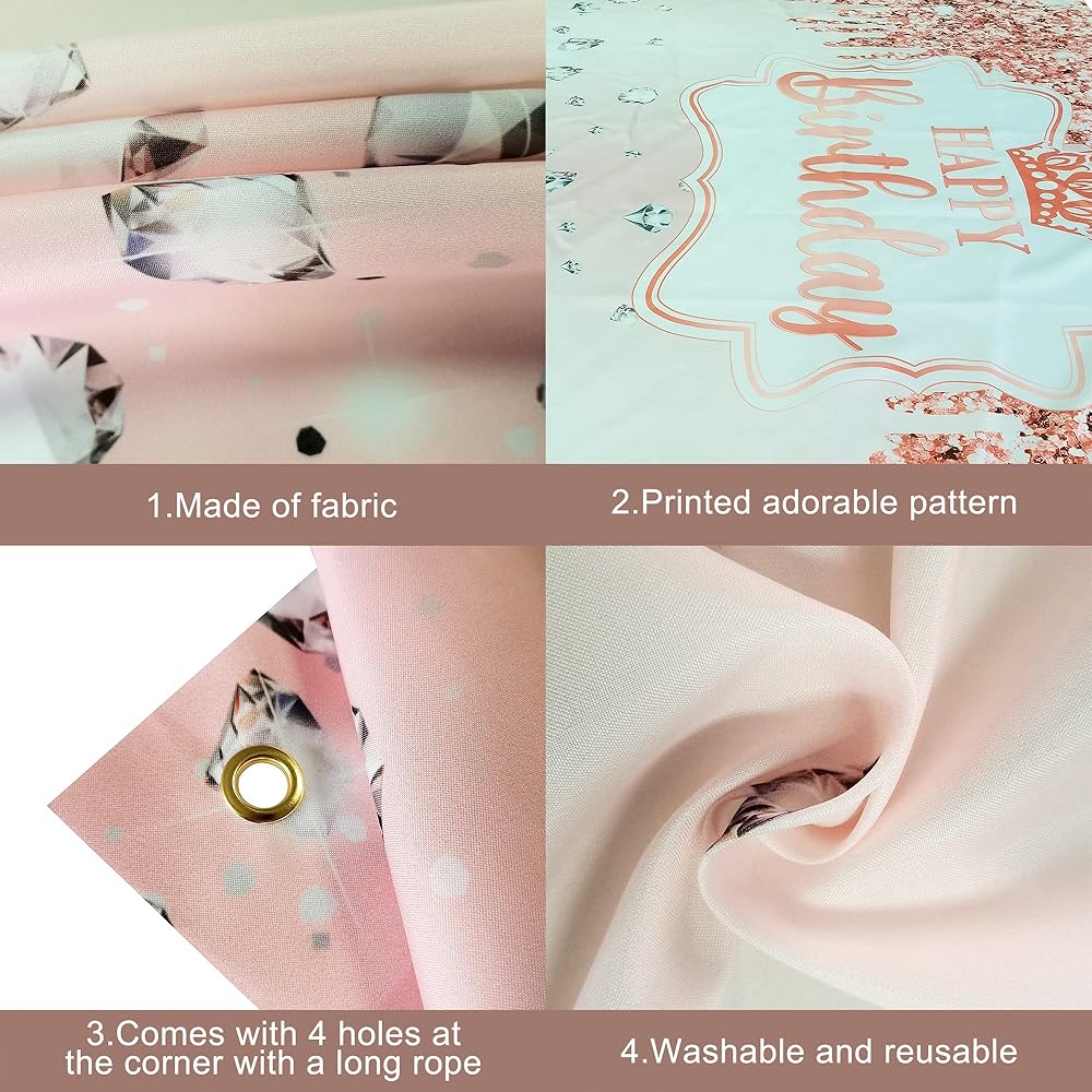 لافتة عيد ميلاد سعيد مبهرة ولامعة: تتميز خلفية عيد ميلاد سعيد باللون الذهبي الوردي هذه سهلة التجميع للفتيات بخاتم مزروع في كل زاوية، عليك فقط تمريرها على طول الشريط الذي يبلغ طوله 20 قدمًا المقدم لتثبيتها. استخدم لافتة عيد ميلاد الفتيات هذه بموضوعات مختلفة مثل ديكورات عيد الميلاد الـ 16 الجميلة للفتيات، ومستلزمات حفلات أعياد ميلاد النساء، وديكورات الحفلات باللون الذهبي الوردي والزهري. مصممة بسطح مستوٍ وحواف ناعمة لتزيين عيد ميلاد سعيد باللون الزهري.