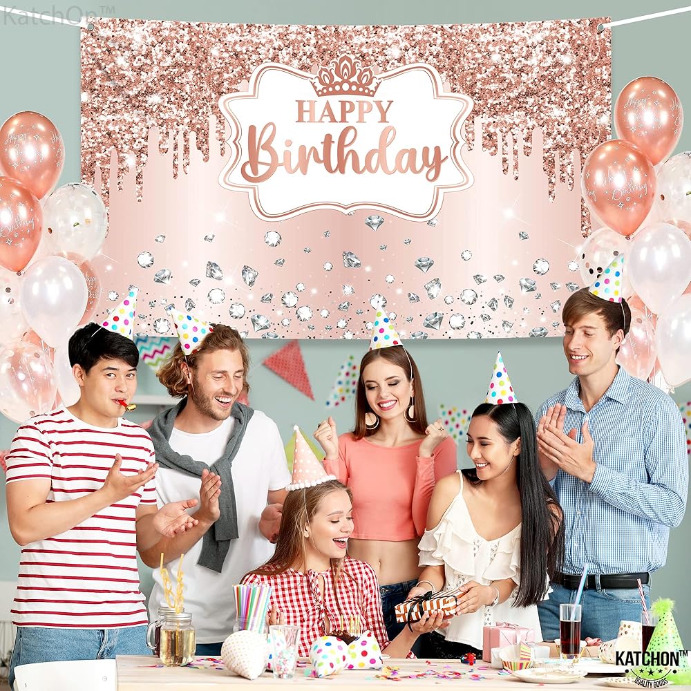 أضف تأثيرًا فاخرًا إلى احتفالات عيد ميلادك مع هذه اللافتة المتينة باللون الذهبي الوردي. استمتع بحفلة عيد ميلاد رائعة ورائعة مع لافتة عيد ميلاد سعيد هذه