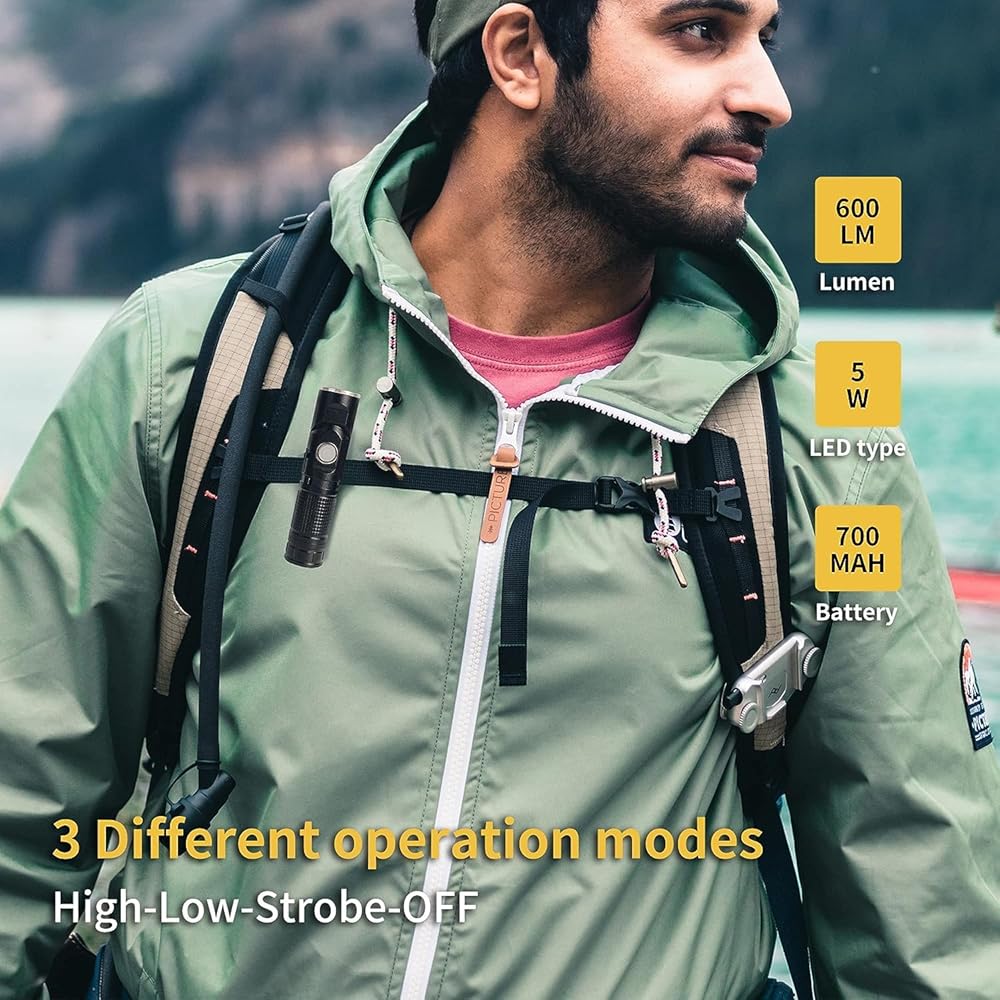 مصباح يدوي ليديفوكس قابل لإعادة الشحن، مصباح يدوي للجيب صغير، شمعة عالية 600 لومن مع قاعدة مغناطيسية مقاومة للماء، مصباح يدوي تكتيكي للتخييم في حالات الطوارئ في الهواء الطلق