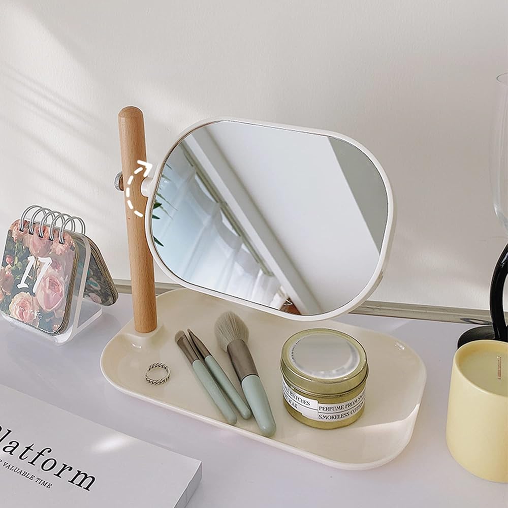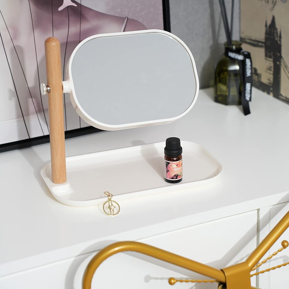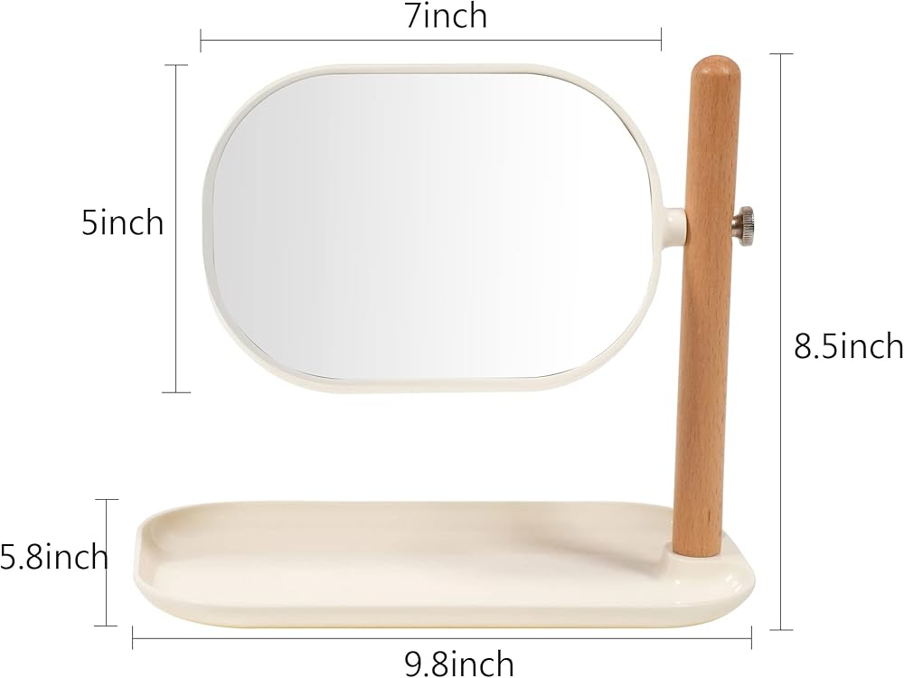 MIRROR SIZE: 7 x 5 inch,Total height:8,.5 inch,TRAY SIZE:9.8 x 5.8 inch