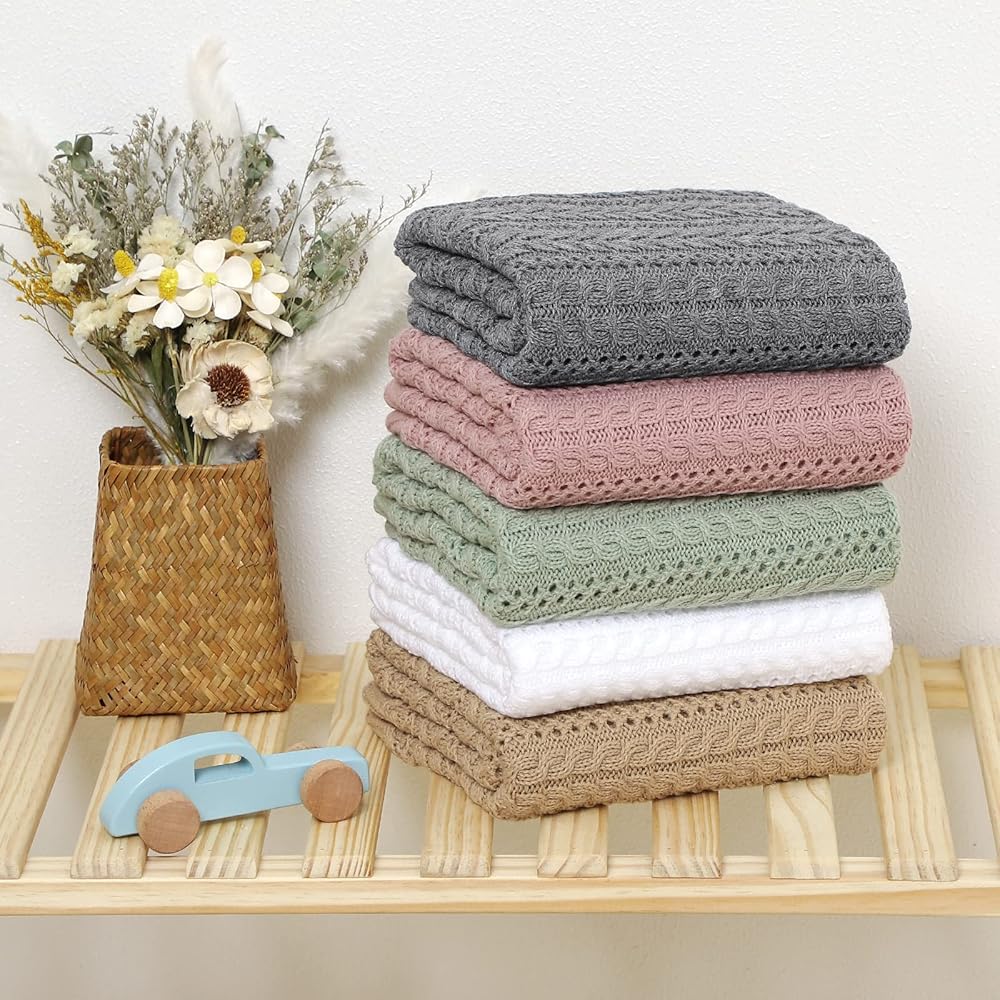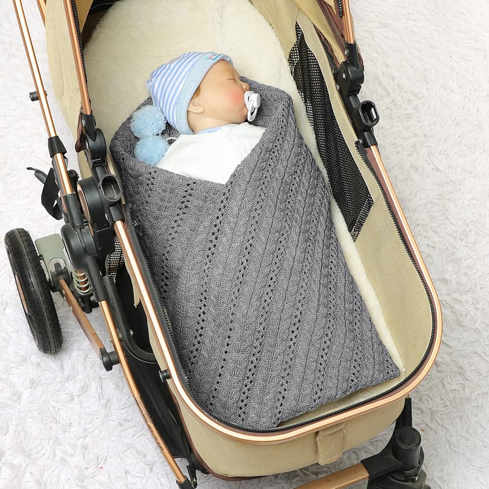 Multipurpose Use: this knit blanket has the perfect stretch for swaddling a newborn or great warmth to keep them cozy in the car seat, nursery, pram, crib, stroller, mose basket.And you would find it to be the perfect size to throw over a small chair or a lap blanket when you are reading.