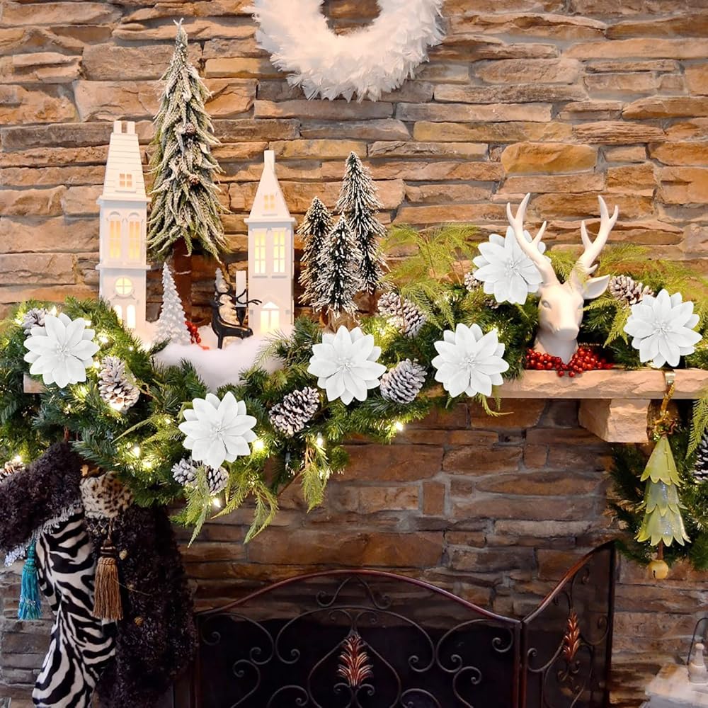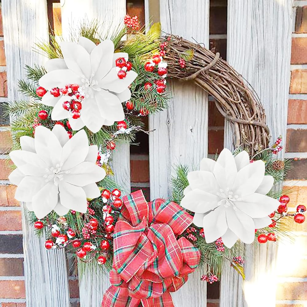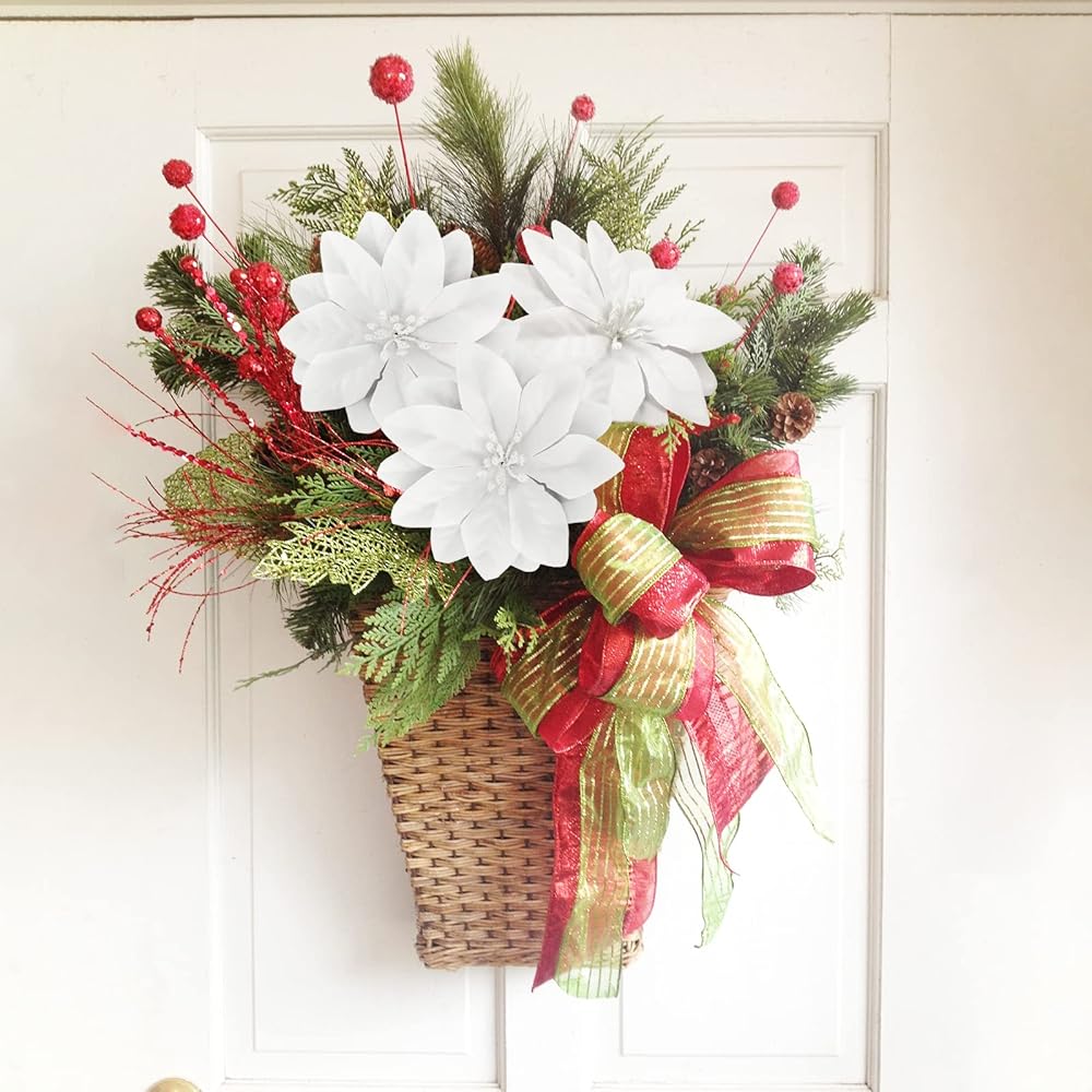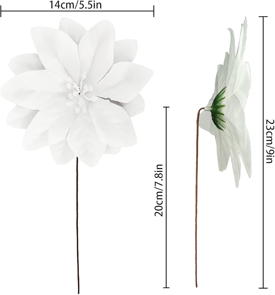 🎅🎄الحجم - حجم الزهرة: القطر 5.5 بوصة. طول الجذع: 5.9 بوصة، الحجم المناسب تمامًا لتزيين شجرة عيد الميلاد، والإكليل، وترتيب الزهور. يمكنك ملء البقع العارية للديكور الخاص بك.