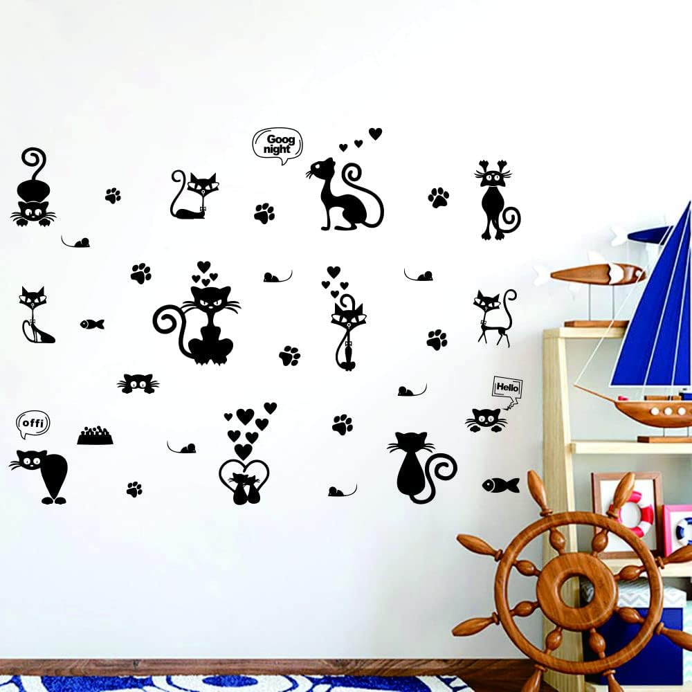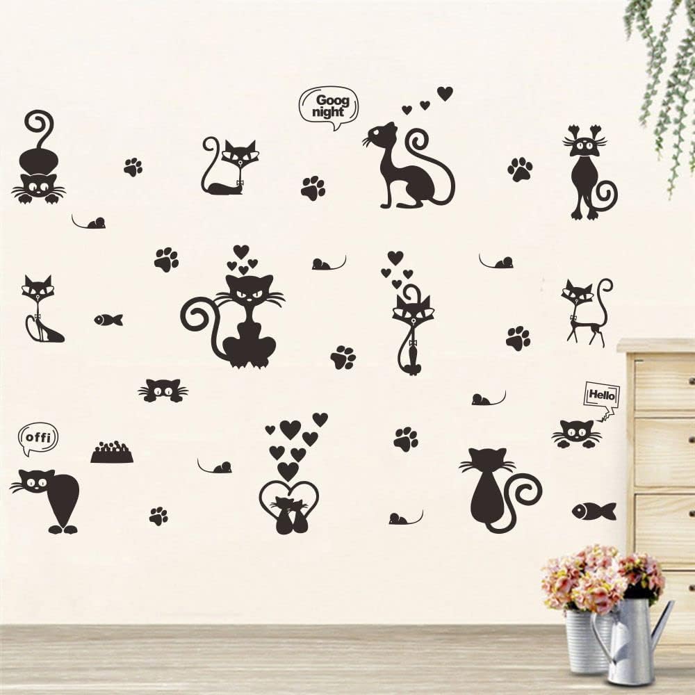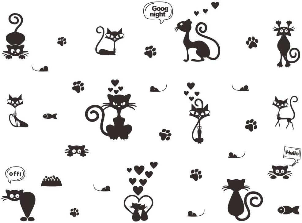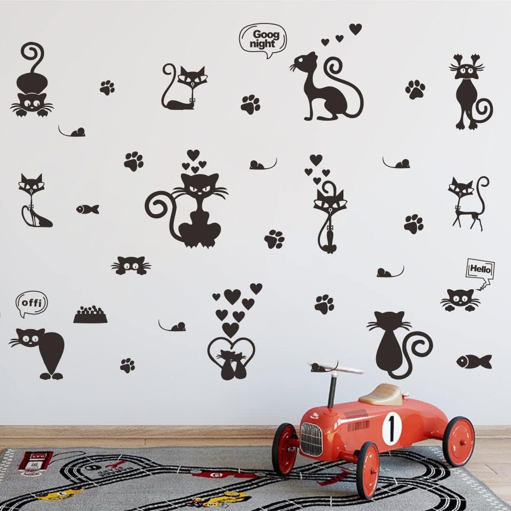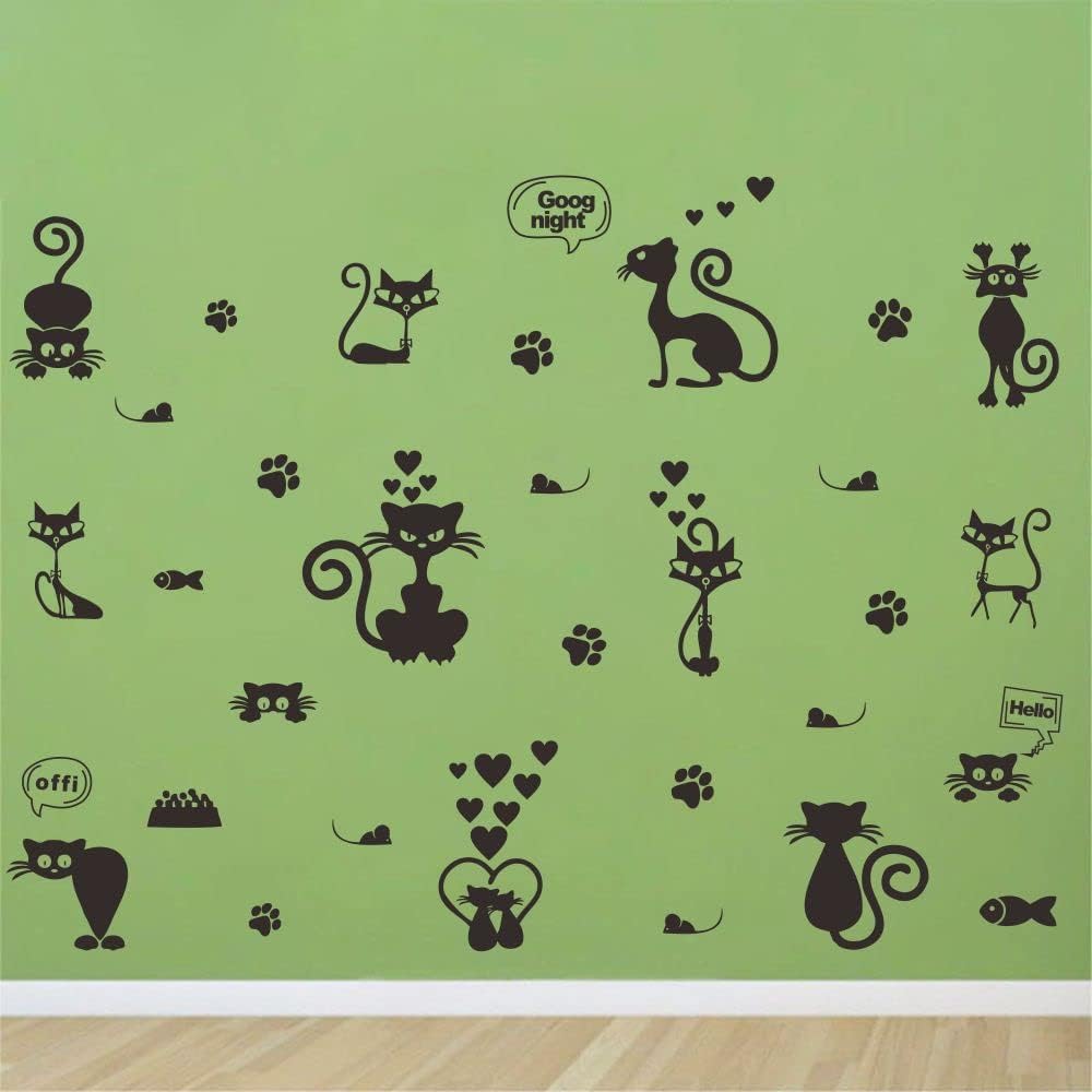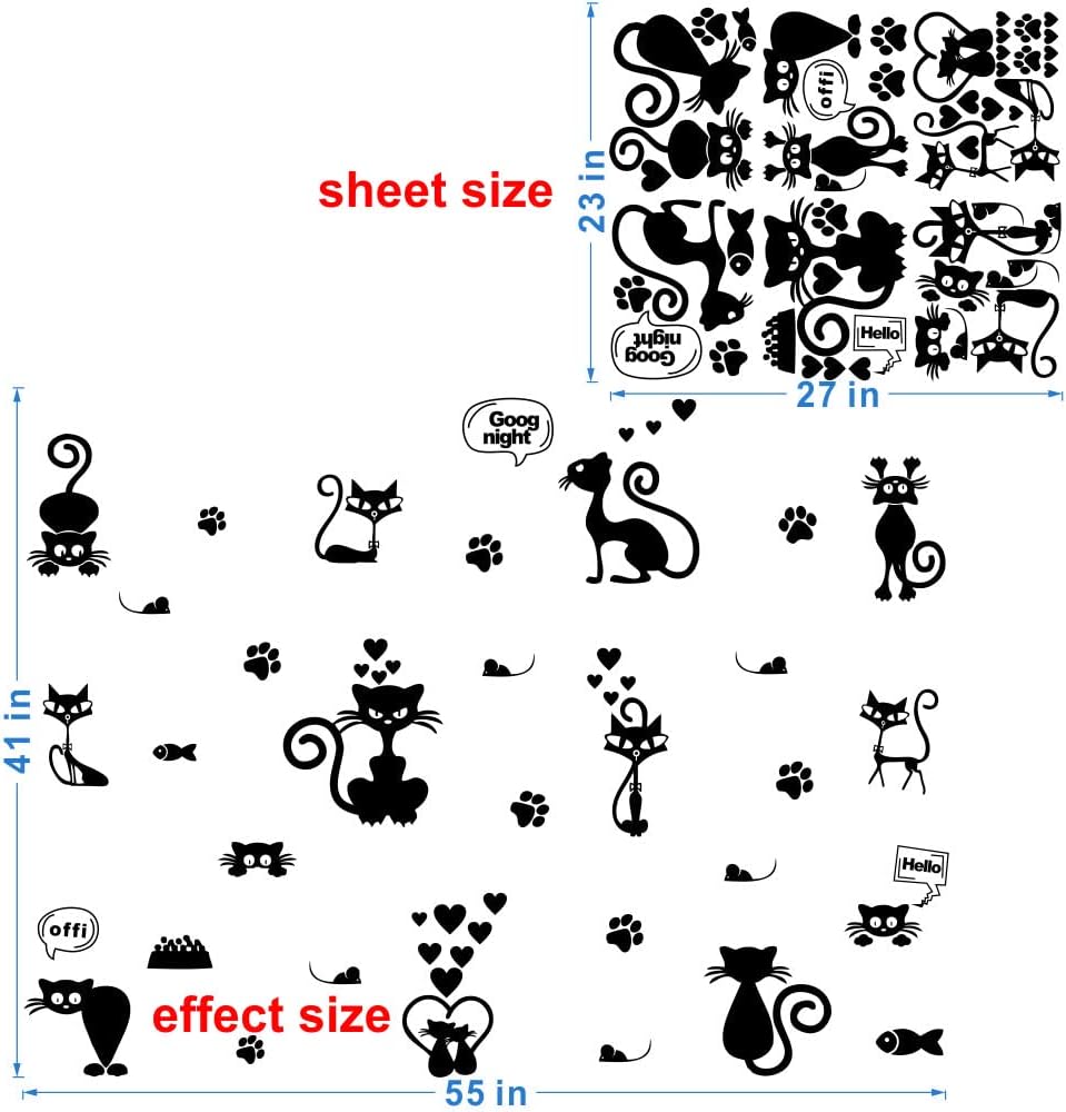 ملصقات حائط على شكل قطة جميلة لتزيين المنزل بتصميم حيوانات كرتونية ~ سهلة الاستخدام وتعطي مظهرًا جديدًا على الفور لغرفة طفلك. مقاس الورقة: 23 انش × 27 انش، مقاس التأثير: 41 انش × 55 انش
