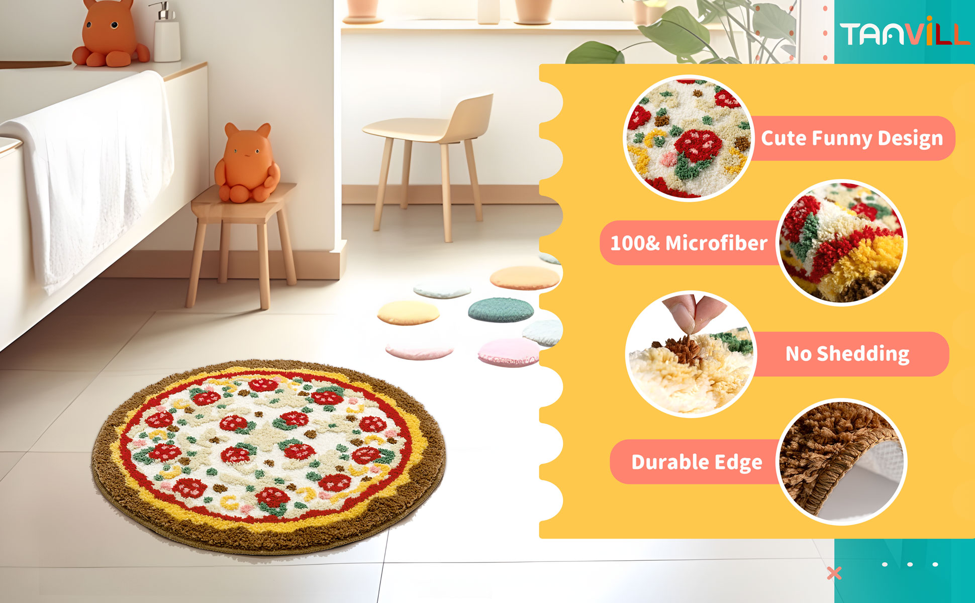 متعددة الأغراض: يمكن استخدام سجادة الحمام اللطيفة لدينا على نطاق واسع في الحمام وحوض الاستحمام والحوض وغرفة النوم وغرفة المعيشة وغيرها من المناطق بما في ذلك ديكور حمام الأطفال بسبب التصميم المثالي المضحك. حصيرة الحمام أيضًا صديقة للحيوانات الأليفة. تعتبر سجاد حمام البيتزا خيارًا جيدًا كهدية جديدة للأولاد والبنات.