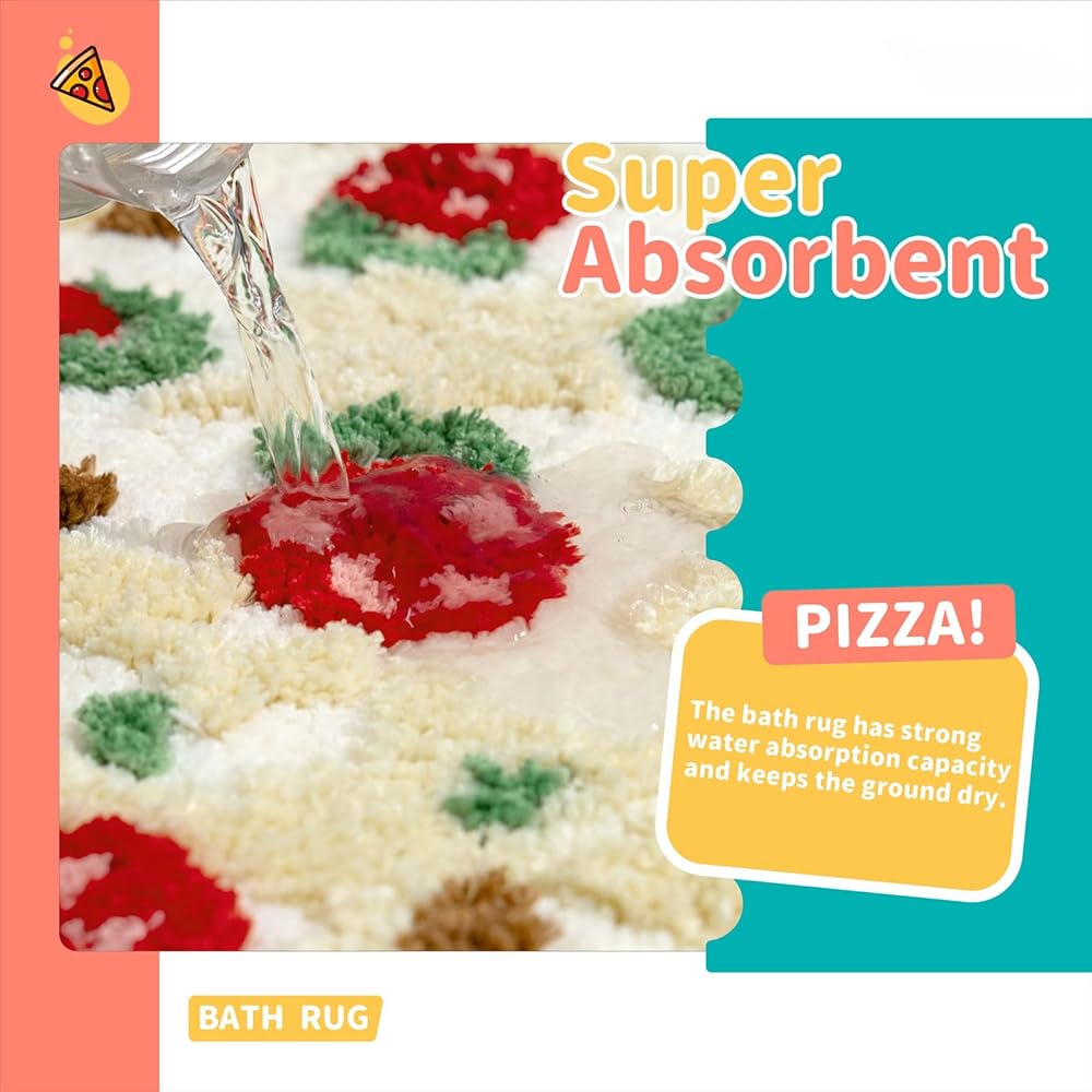 فائقة الامتصاص وناعمة: مصنوعة من مواد ألياف دقيقة عالية الجودة، يمكن لسجادة حمام البيتزا المضحكة هذه أن تمتص الماء بسرعة وكفاءة. حافظ على أرضيات حمامك جافة ونظيفة طوال اليوم. القطيفة السميكة لسجادة الحمام ضيقة جدًا، مما يجعل سجادة الحمام ناعمة ومريحة عند اللمس والدوس عليها.