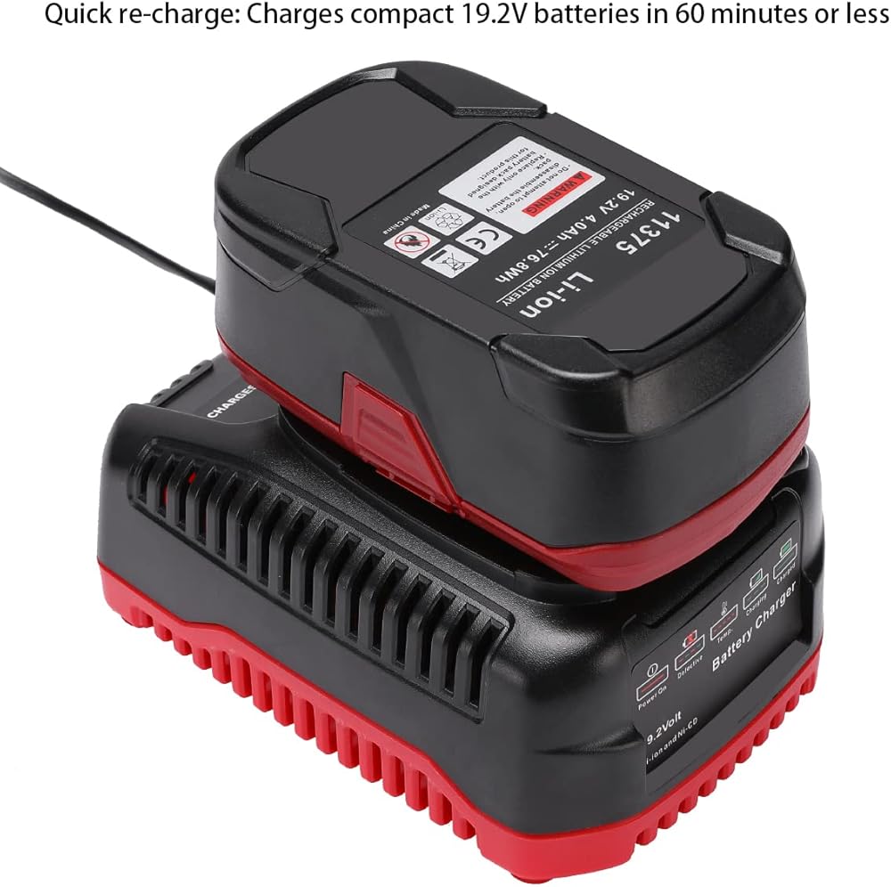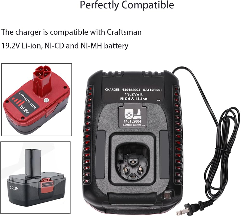 متوافق على نطاق واسع: شاحن بطارية 19.2 متوافق مع بطارية Craftsman 9.6V to19.2V Ni-Cd وبطارية ليثيوم أيون. 315.PP2010 315.PP2011 315.PP2030 11375 11376 130279005 وما إلى ذلك (لا تناسب بطاريات Ni-MH 19.2 فولت، بطارية Nicad 9.6 فولت 1323424، بطارية ليثيوم 14.4 فولت 9-11007، بطارية 18 فولت).
