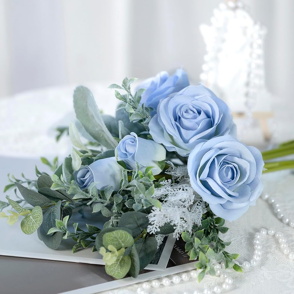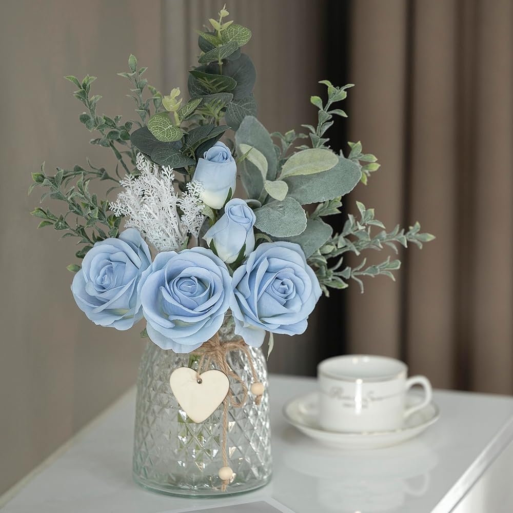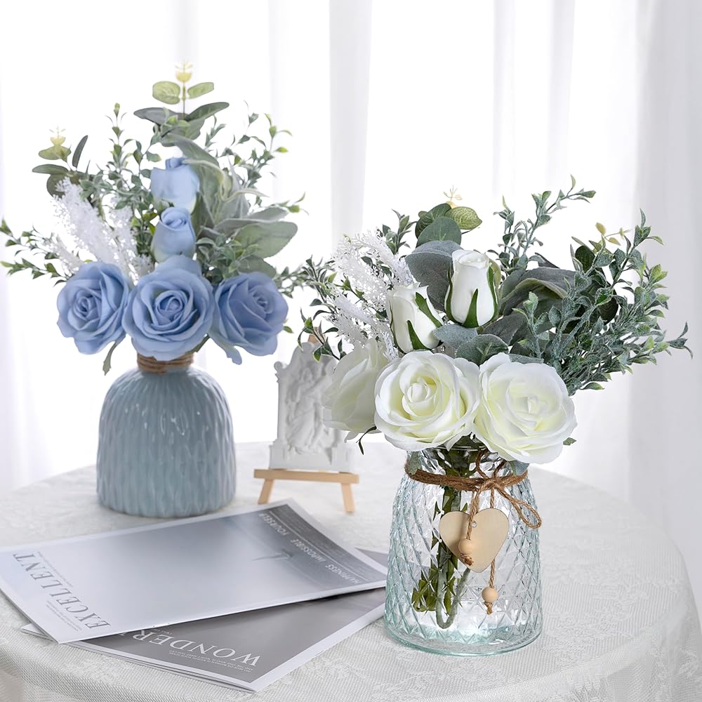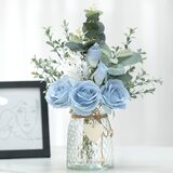باكباكينغ: مجموعة من 4 باقات ورد (كل باقة بها 6 فروع، المجموع 12 وردة) ومزهرية سيراميك جميلة