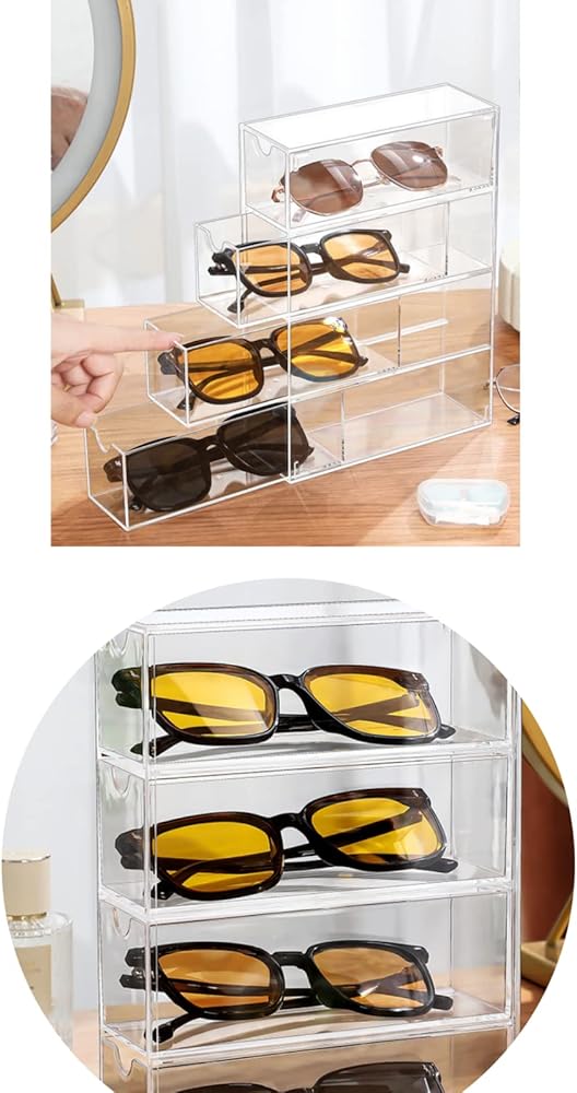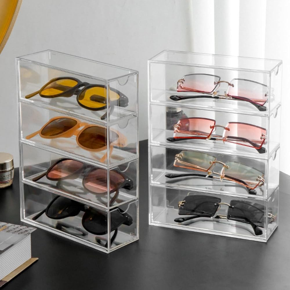 لونغ تاو حامل عرض من الاكريليك الشفاف مكون من 4 طبقات، حامل عرض النظارات الشمسية، حامل عرض زجاجي، حافظة عرض النظارات، حافظة عرض النظارات، صندوق تخزين النظارات، حامل منظم سطح المكتب قابل للتكديس