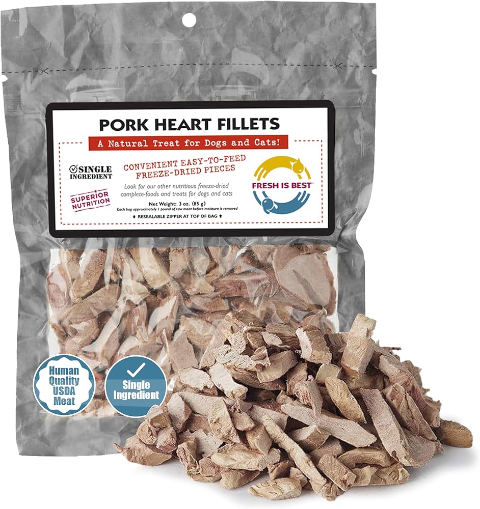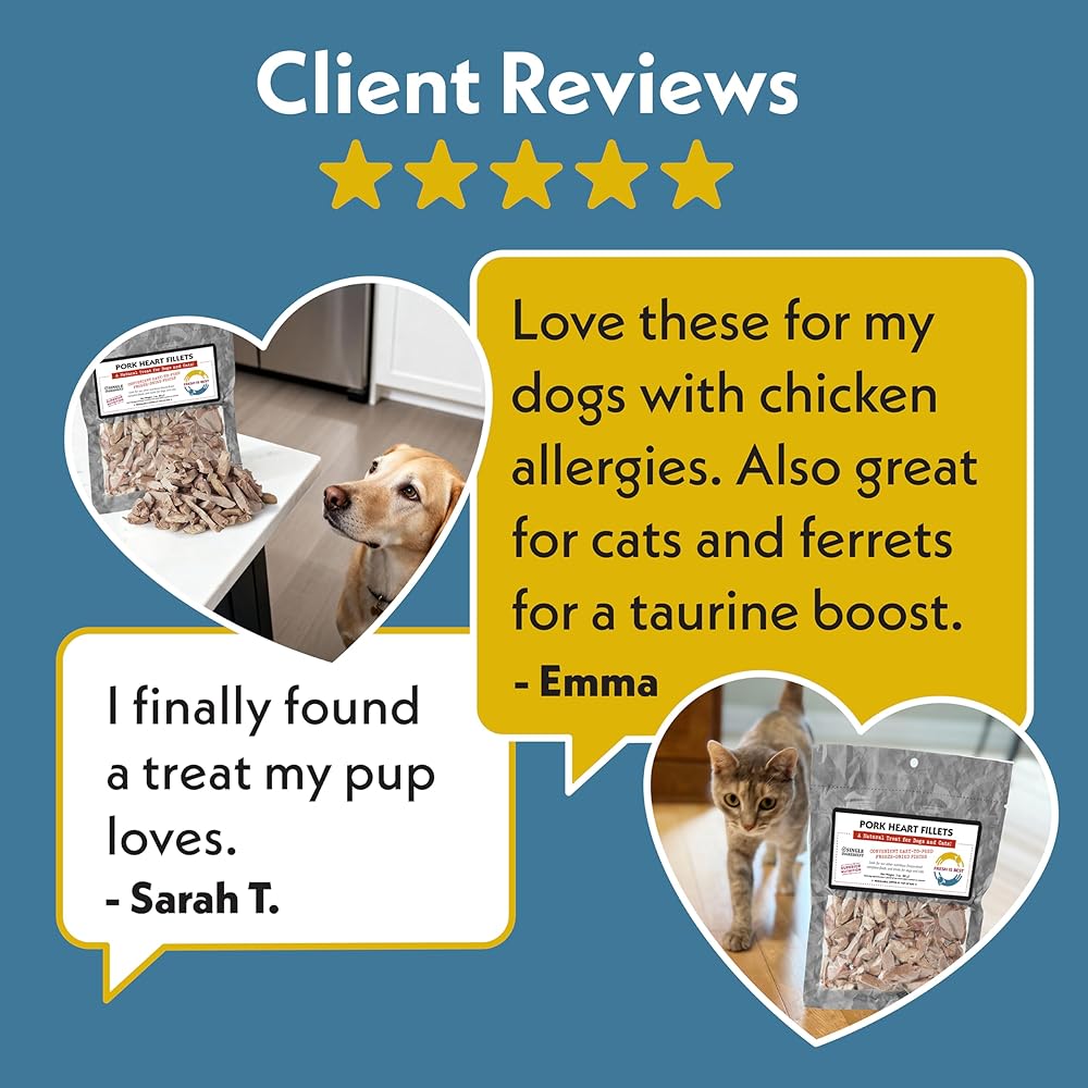 شرائح قلب لحم الخنزير - يحتوي هذا الكيس سعة 3 أونصة على قلوب لحم الخنزير الطازجة والمجففة عالية الجودة فقط. جميع اللحوم النيئة طبيعية، بدون أي هرمونات أو مواد حافظة أو حشوات مضافة. 100% خالي من الحبوب والغلوتين والنشا، ومكونات ذات جودة بشرية.