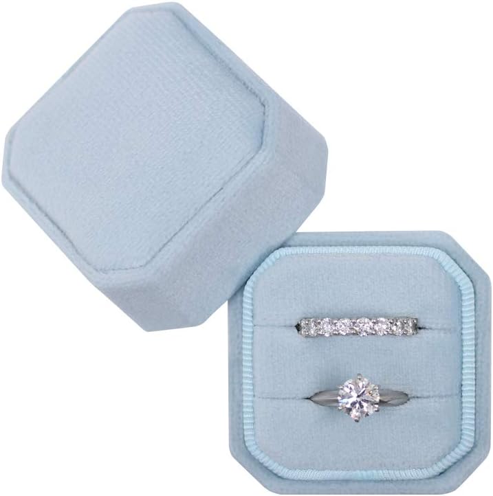 💎Mr. & Mrs. heirloom velvet ring box, velvet fabric with modern square-octagon design.