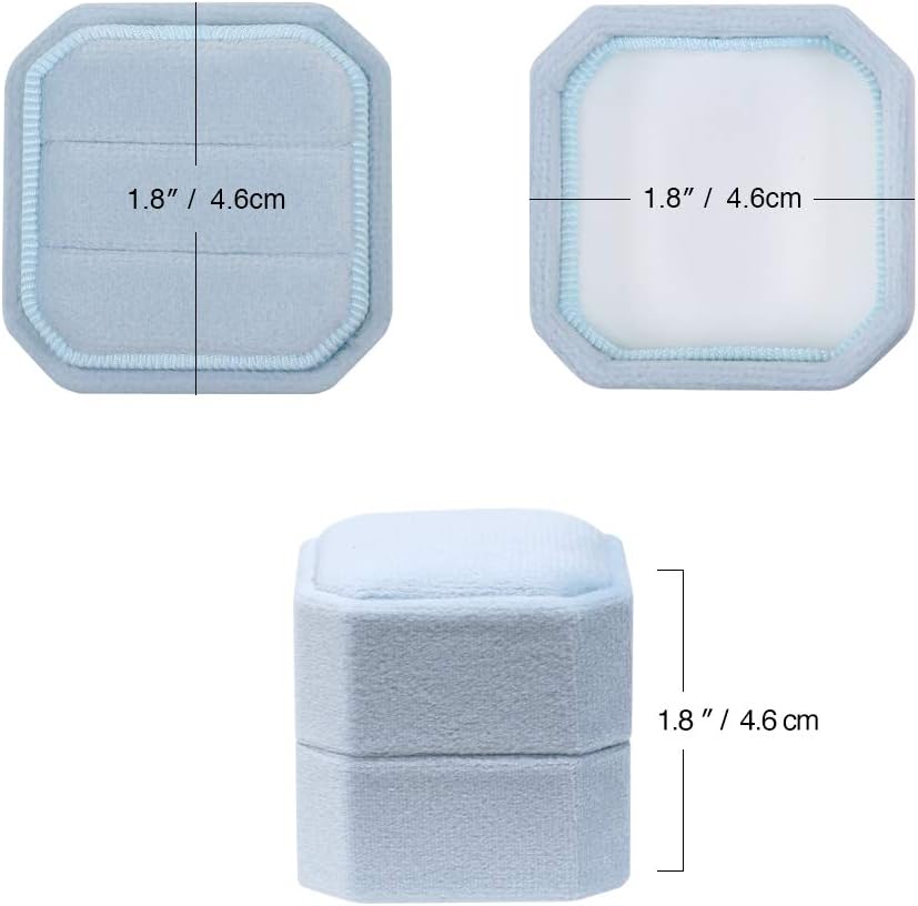 This is our beautiful High quality materials velvet ring boxes. Shape:Octagon-Square More Details * Size: 1.80" x 1.80" x 1.80" H * Material: Velvet Type: Ring Box