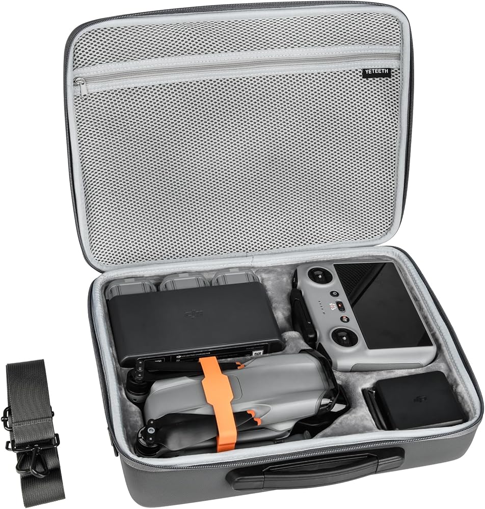 YETEETH حقيبة حمل لـ DJI Air 3، حقيبة كتف محمولة للسفر من جلد البولي يوريثان للتخزين لـ DJI Air 3 Fly More Combo Drones مع وحدة تحكم DJ RC 2 وملحقات أخرى (رمادي)