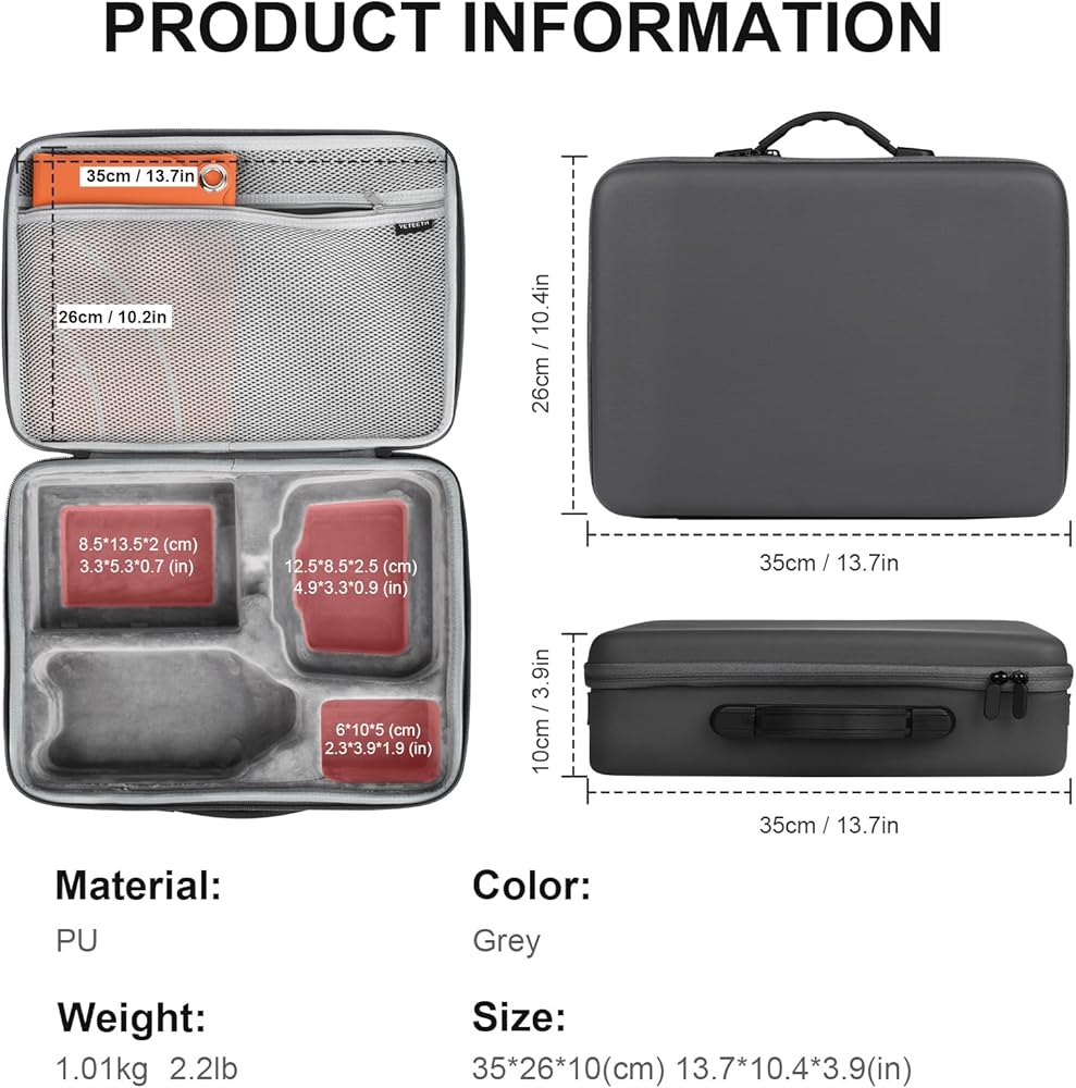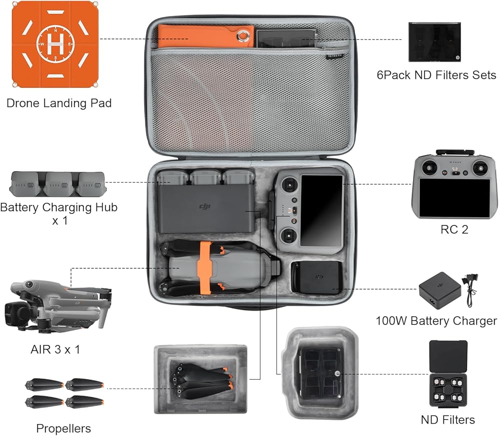 • 【حقيبة حمل لجهاز دي جيه اي اير 3】تم تصميم حقيبة التخزين هذه خصيصًا لطائرة درون دي جيه اي اير 3 ووحدة تحكم ار سي 2/ار سي -ان 2 وغيرها من الملحقات.