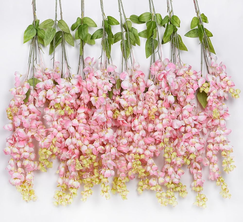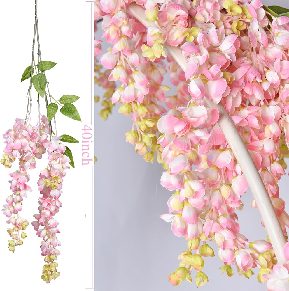 • The wisteria flowers well made and vibrantly colored- looks and feel just like real flowers,Pure natural style,simple and elegant,Easy to wash and keep clean,Simple installation,beautiful wedding home party decoration