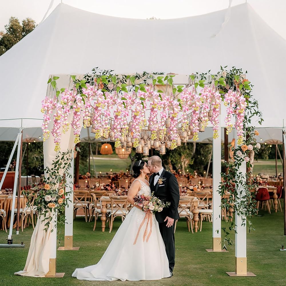 Work out very well on an arch for wedding,wall, doors, swing, mirrors,vases and anywhere as you like to enjoy with artificial Wisteria vine,lThere will be a very good decorating effect