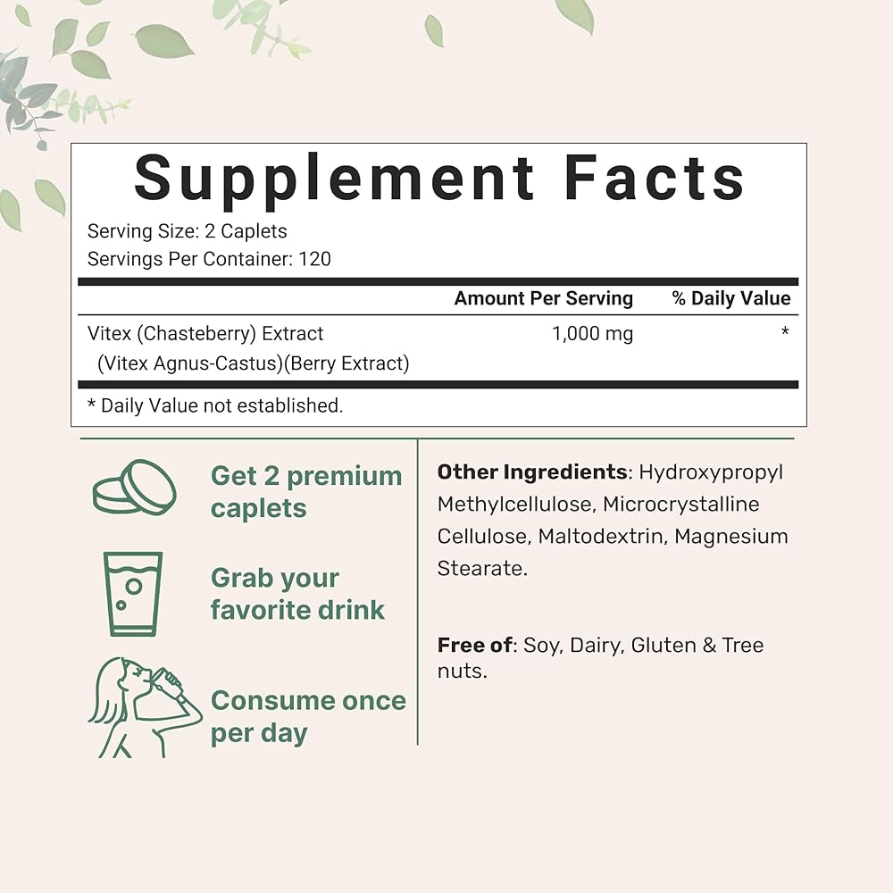 Each pouch contains 240 total caplets from freshly harvested vitex berries, 2 caplet serving size, delivers a 1,000mg vitex berry extract per dose (500mg per cap), lasts up to a 120-day supply.