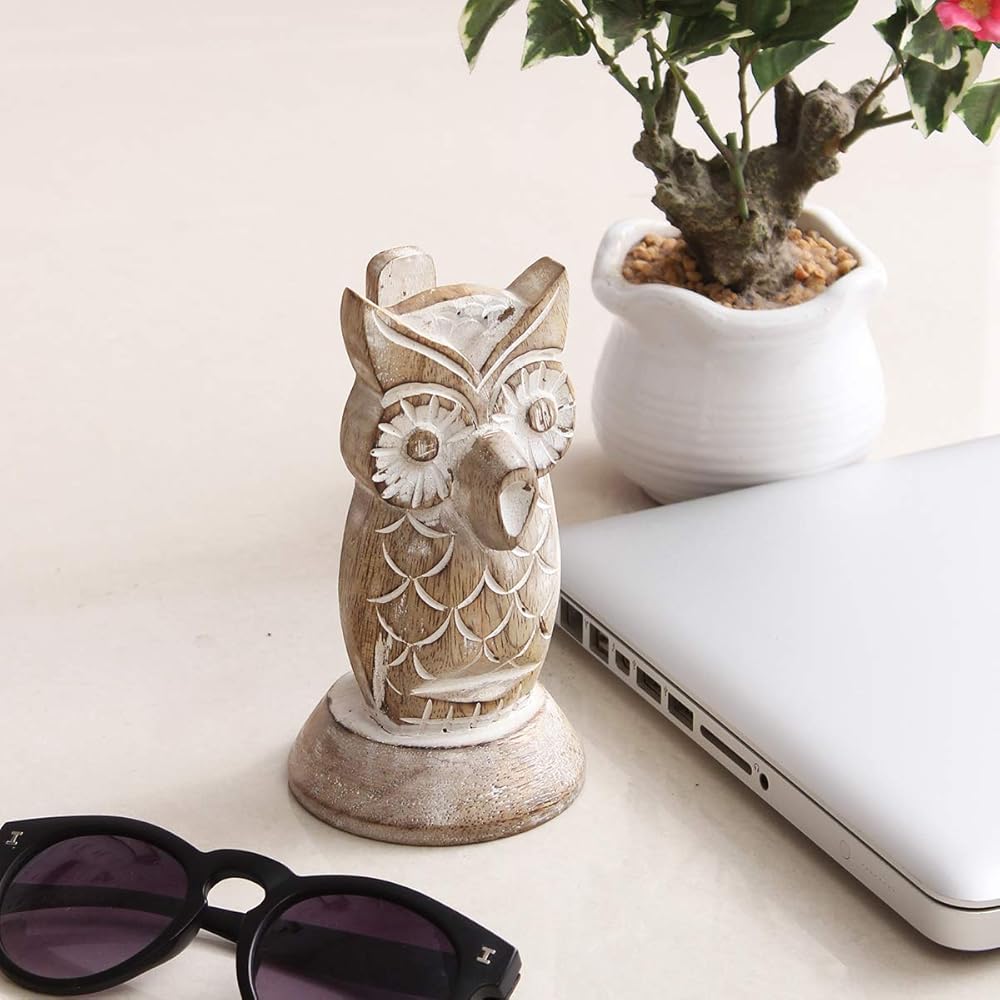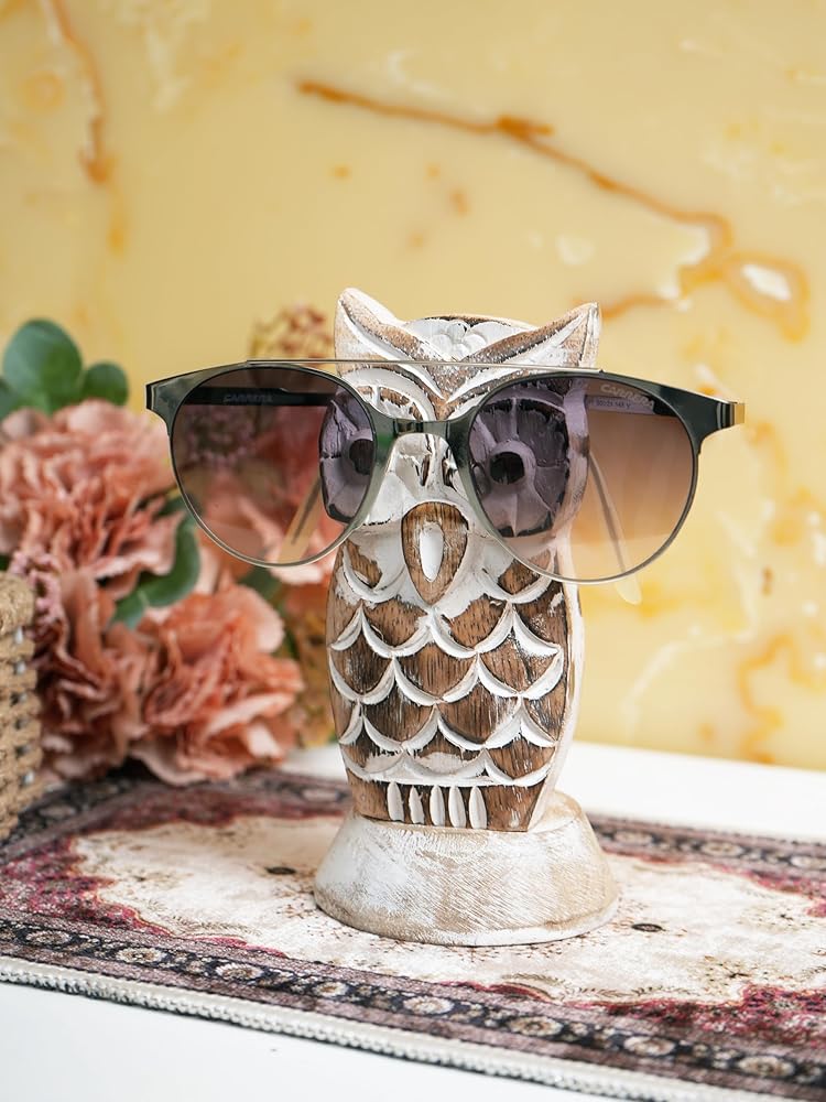 حامل نظارات أمريكي هندي حامل نظارات خشبي مصنوع يدويًا ملحقات النظارات البصرية (البومة)