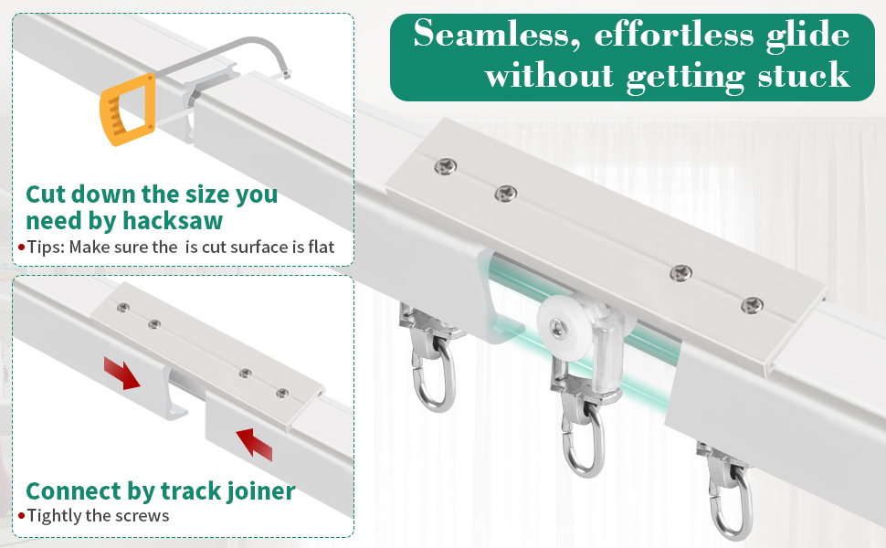 قابل للقص: يمكن قص مسار قضيب الستارة بسهولة إلى الحجم المثالي الذي تحتاجه (نصائح: قص مسارات الستارة للتأكد من أن القطع)