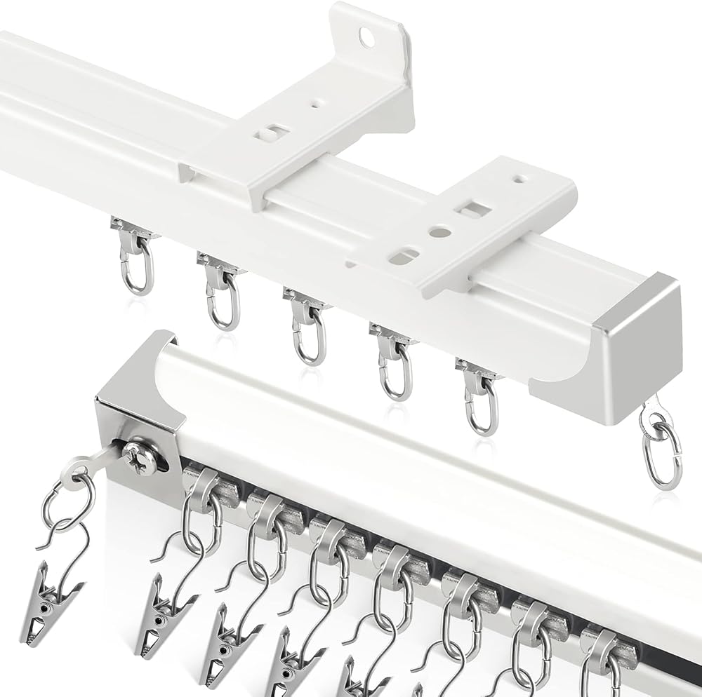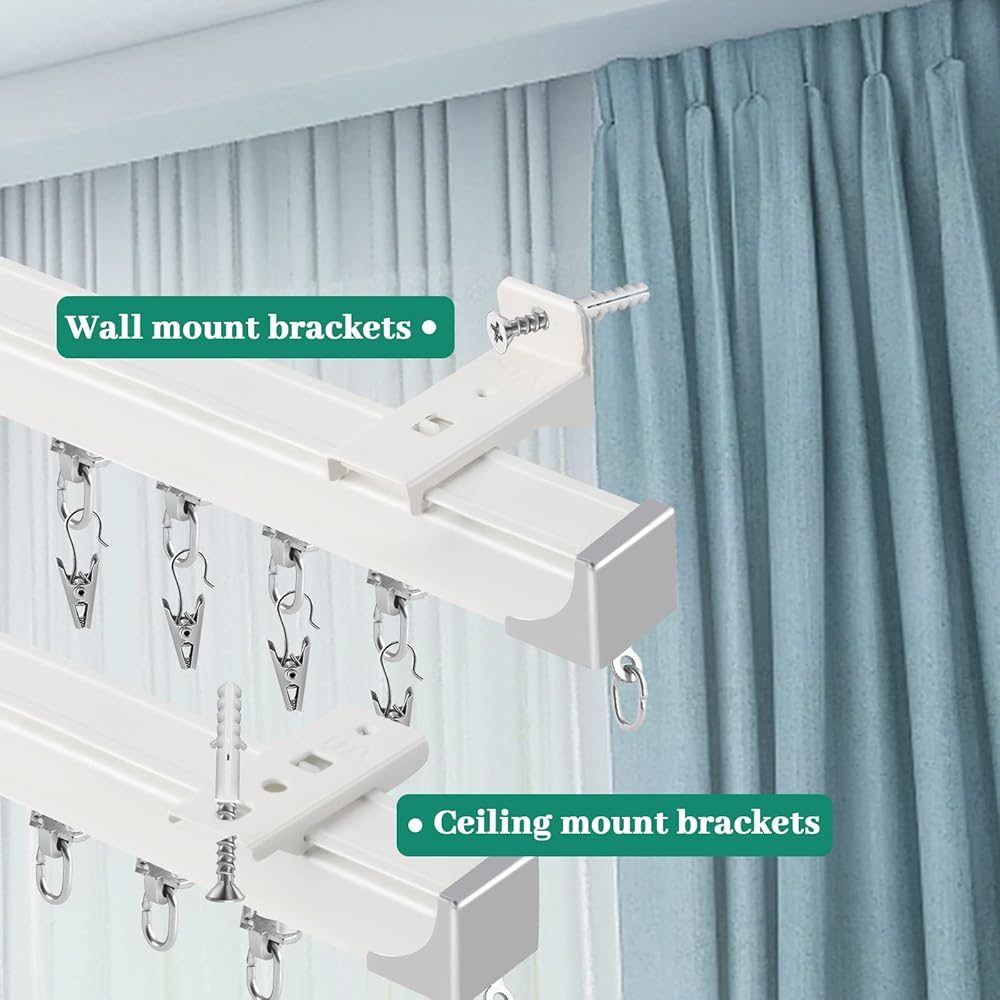 • حامل السقف وحامل الحائط لمسار الستارة: لتسهيل استخدام قضيب الستارة، تأتي مجموعة مسار الستارة الخاصة بنا مع جميع الملحقات التي تحتاج إلى تركيبها. يتم تضمين دعامات السقف ودعامات الحائط لتلبية احتياجات الاستخدام المختلفة (معظم البائعين يقدمون دعامات السقف فقط). كما يساعدك دليل التركيب على التركيب السريع والخالي من المتاعب.