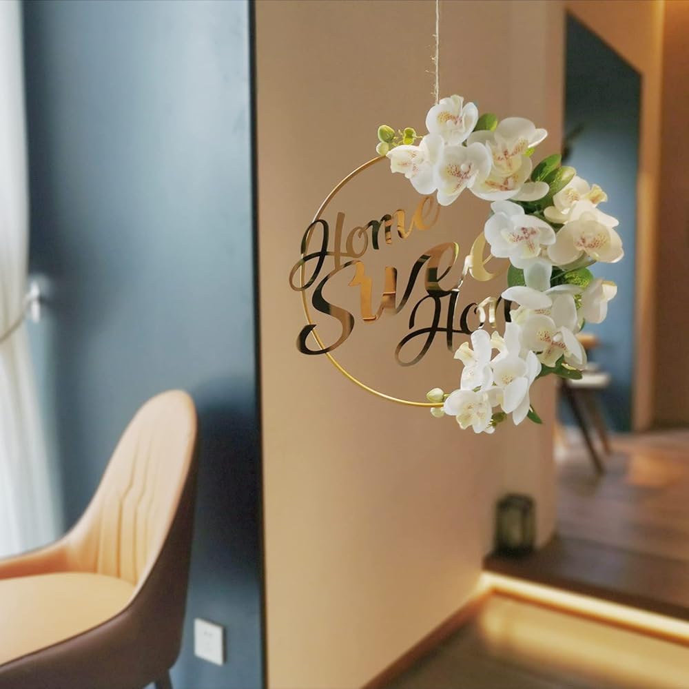 اكاليل ديكور المنزل الجميل من ايلودي او، اكليل معدني معدني بتصميم زهور للباب الامامي، حلقة ذهبية معلقة على شكل اكليل دائري، ديكورات منزلية للجدار والنوافذ في الداخل