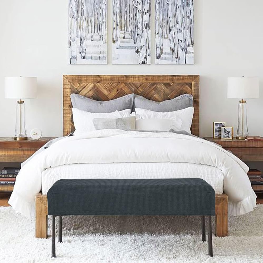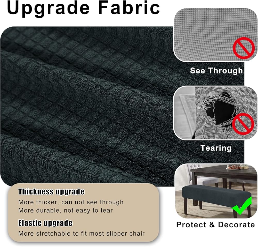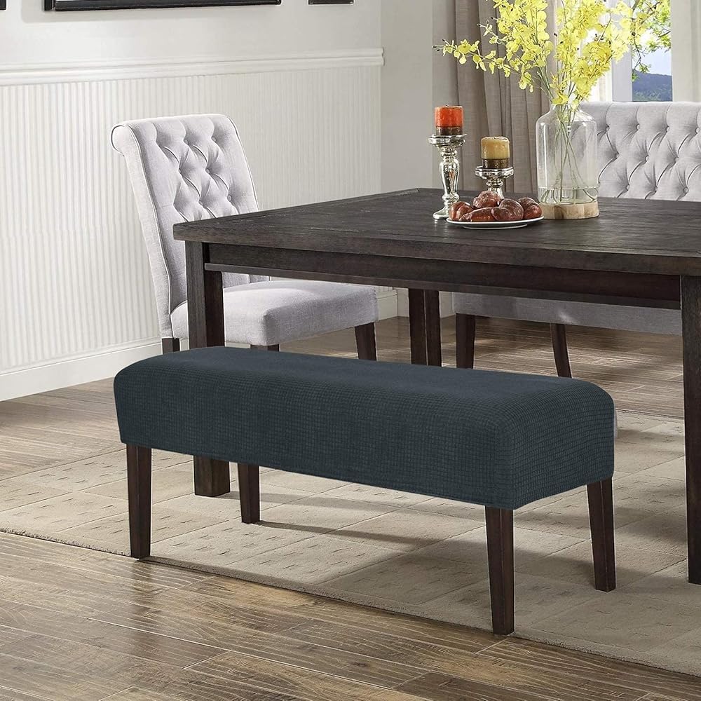 غطاء مقعد طاولة الطعام من WOMACO مصنوع من قماش مطاطي مستطيل الشكل لمقعد البيانو في المطبخ (رمادي داكن، متوسط)
