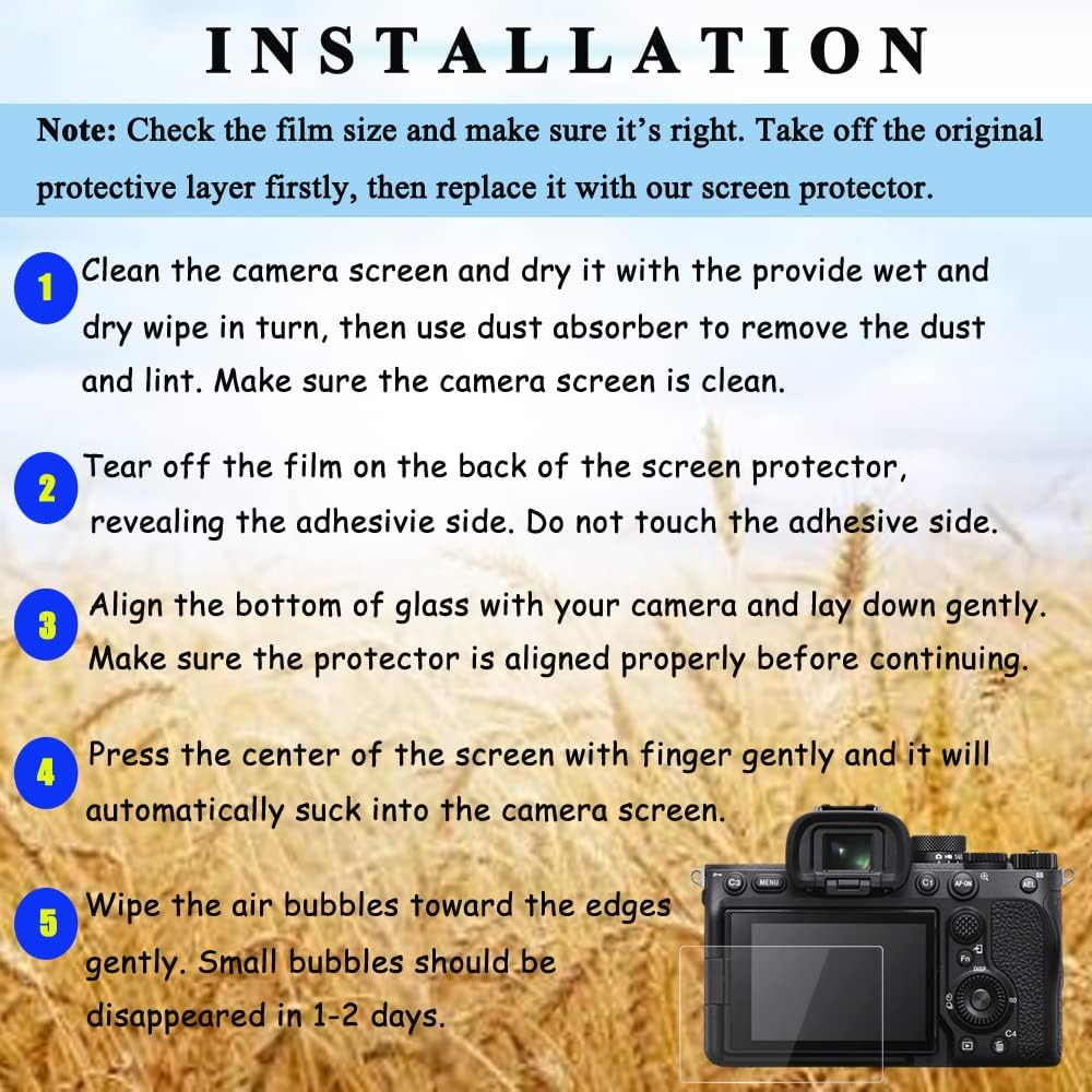 • 【صلابة عالية】مصنوع من زجاج بصري، وقت تقسية أطول، مما يجعل شاشة الحماية تتمتع بصلابة أعلى. صلابة عالية 9H تحمي شاشة الكاميرا الثمينة الخاصة بك من التلف المفاجئ مثل السقوط والخدوش والأشياء الحادة.
