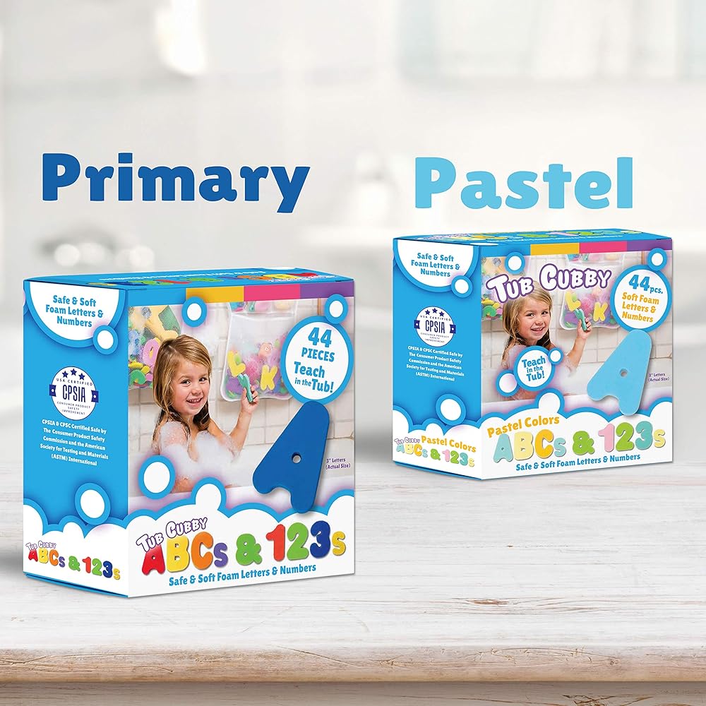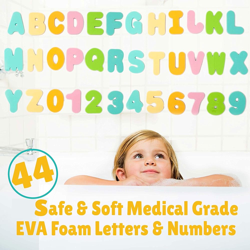 حوض استحمام آمن وناعم ABC 123 حروف وأرقام حمام رغوية - تلتصق بشكل سحري على الجدران الرطبة + بطة مطاطية إضافية | مجموعة لعب حوض الاستحمام التعليمية للأطفال بالحروف الأبجدية من سبيل آند كونت - 44 قطعة إضافية