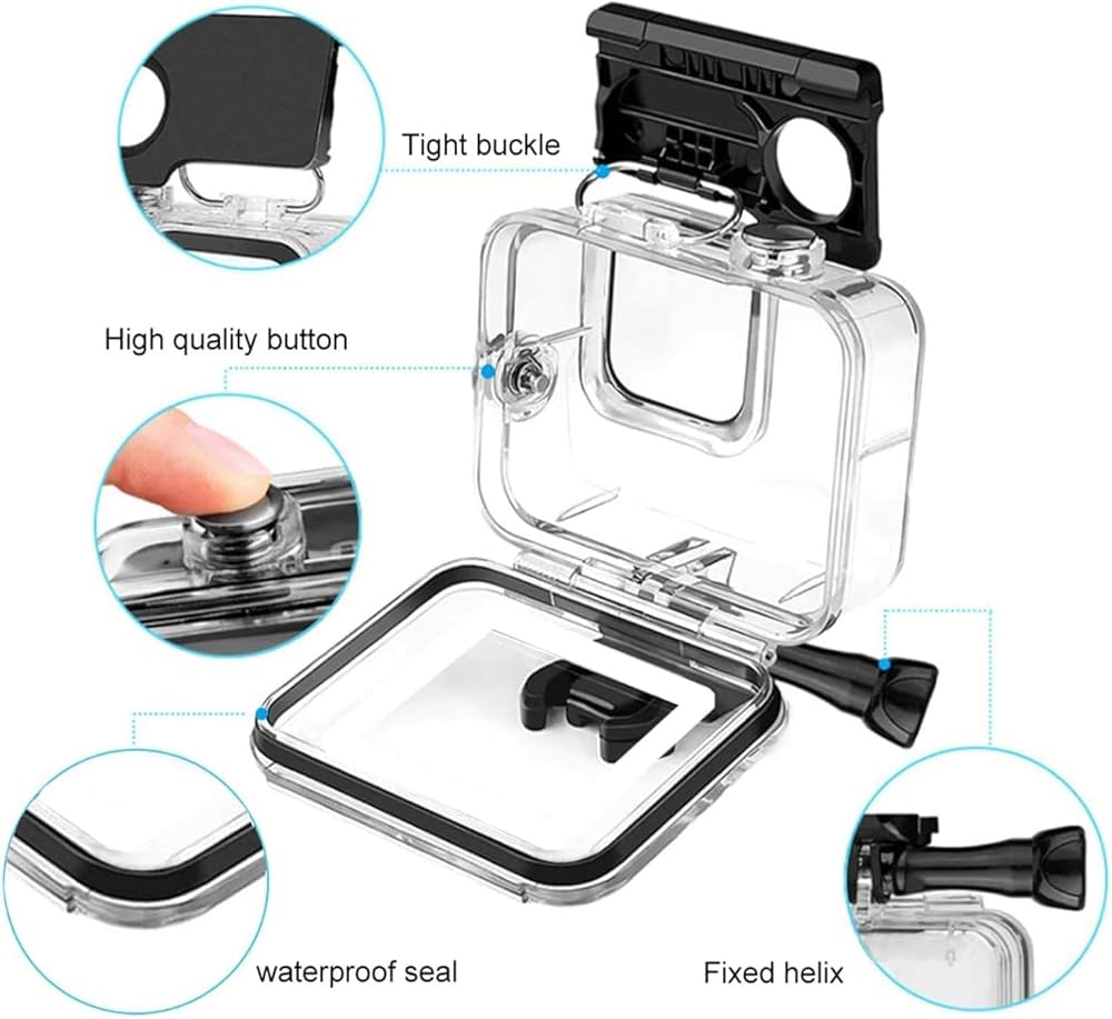 • 【حجم دقيق】 مصممة خصيصًا لكاميرا جوبرو هيرو 2018 جو برو هيرو 7 بلاك/ هيرو 6/ هيرو 5/ هيرو اتش دي، توفر هذه الحافظة حماية قصوى لكاميرا جوبرو أثناء الأنشطة الخارجية القاسية والغوص في الماء العميق. كما أنها مدمجة بسهولة لتشغيل الغالق / زر الطاقة أو اختيار زر المفتاح/الوضع تحت الماء مع زر خارجي وتركيب سريع الفك وبرغي الإبهام..
