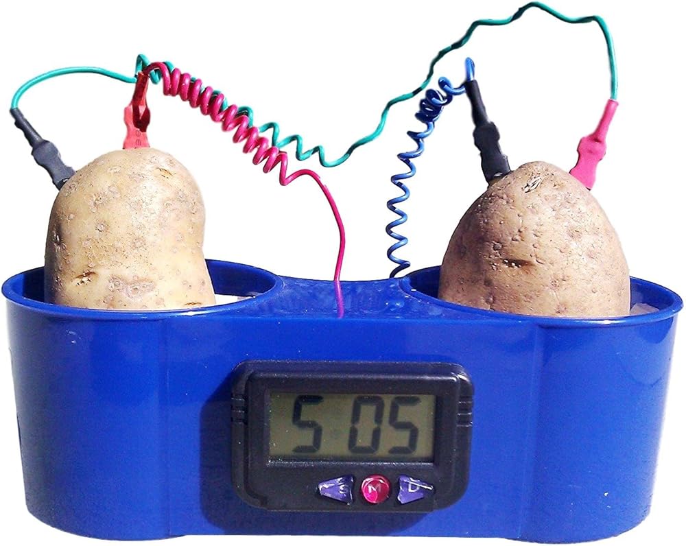 تم تصميم ساعة البطاطس هذه لإظهار مبدأ الخلية الكهروكيميائية. تعمل ساعة ال سي دي على قطعتين من البطاطس أو البرتقال أو الليمون أو الجريب فروت أو علب الصودا. التصميم الذي لا يسبب الفوضى مع الأقطاب الكهربائية المرفقة رائع للمجربين الصغار، ويضمن عدم فقدان الأجزاء بعد مرة. يسمح التصميم المدمج بتخزين مريح عند عدم الاستخدام.