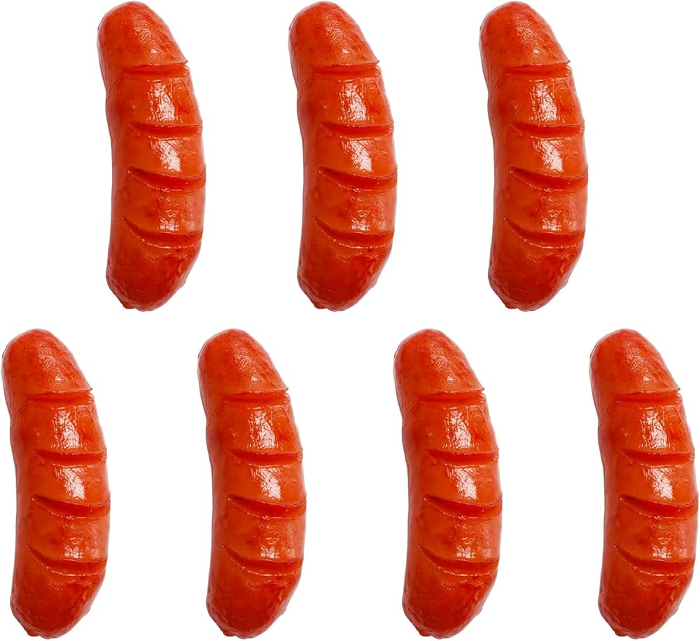 Bbiamsleep 7 قطع اصطناعية نابضة بالحياة هوت دوج محاكاة هوت دوج مظهر واقعي فو هوت دوج وهمية السجق نموذج الغذاء الاصطناعي للمطبخ ديكور المنزل الطرف عينة الدعائم التصوير الفوتوغرافي