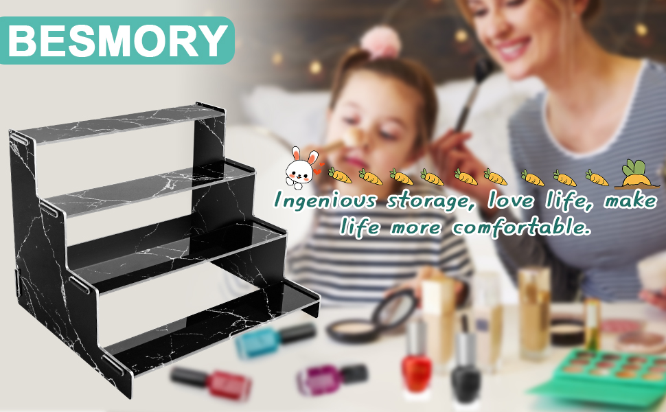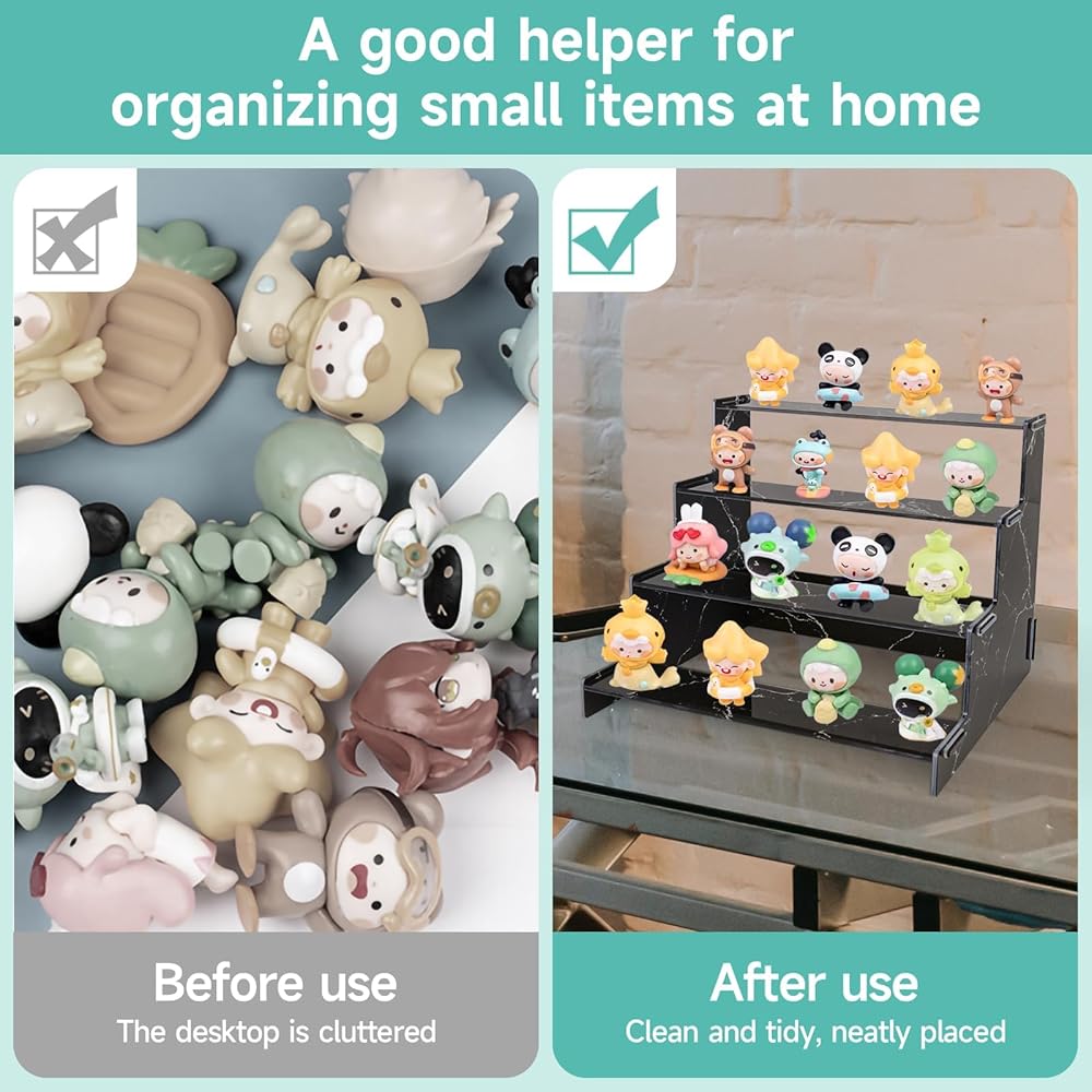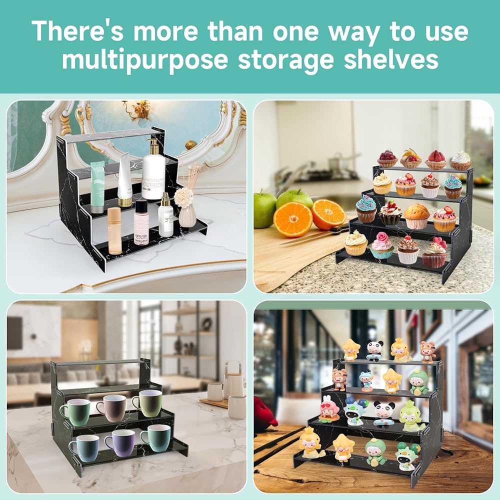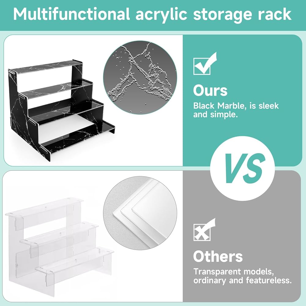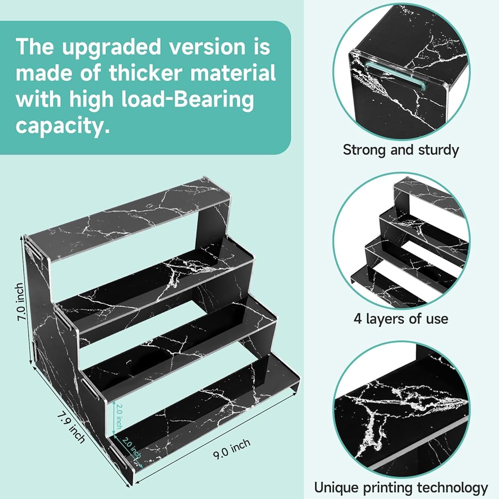 • [شاشة سميكة من 4 طبقات] منظمات الأكريليك مطبوعة بالأشعة فوق البنفسجية على أساس لوحة أكريليك 3 ملم، وهي أكثر سمكًا وأقوى. 4 طبقات من مساحة التخزين، تصميم سلم، نمط أنيق وعصري.