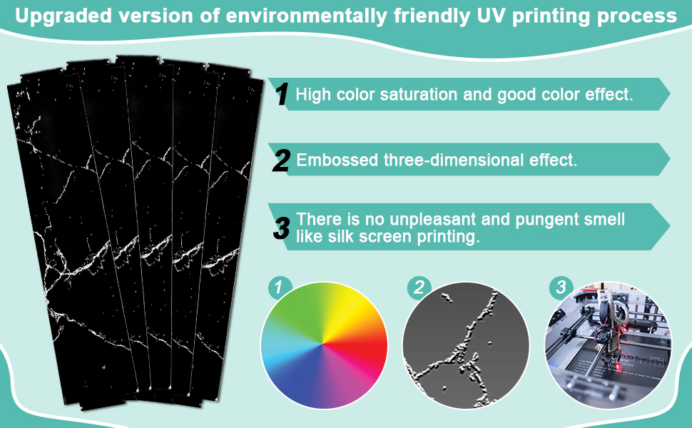 • [نمط رخامي لامع متطور] تعتمد أرفف الأكريليك على تقنية الطباعة بالأشعة فوق البنفسجية، بألوان جميلة وغنية، مقاومة للاهتراء، ونمط الرخام الأسود أكثر تقدمًا وبساطة.