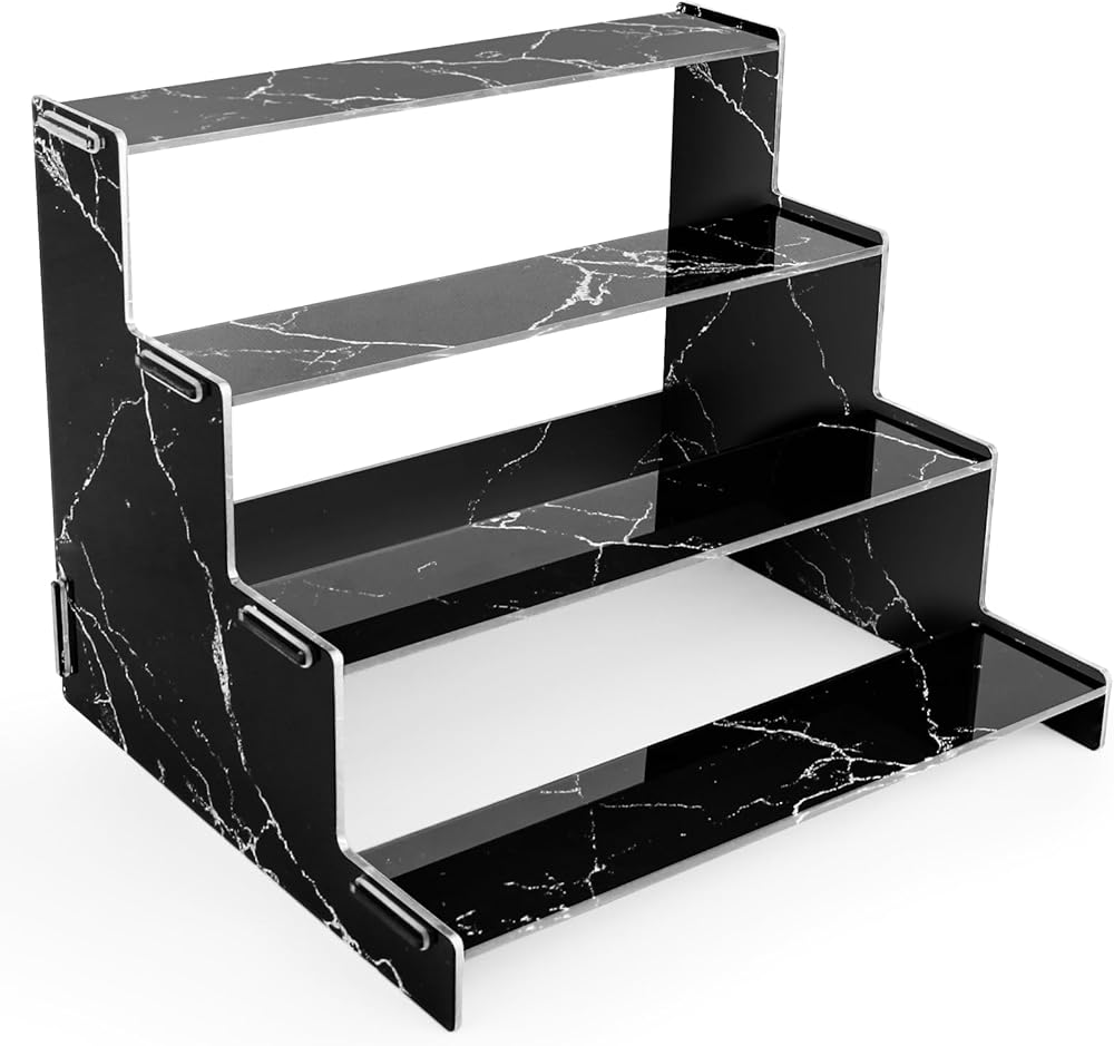 3. النمط: حامل أكريليك من 4 طبقات بنمط رخامي أسود