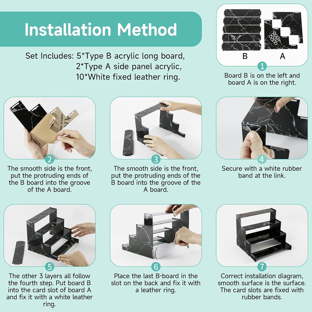 • [سهلة التركيب] حافظة عرض من الأكريليك لا تحتاج إلى مفك براغي، يحتوي منتجنا على دليل مدمج، تمامًا مثل مكعبات البناء، قم بمحاذاة الحربة وثبتها بشريط مطاطي. يجب إزالة الطبقة الواقية قبل الاستخدام.