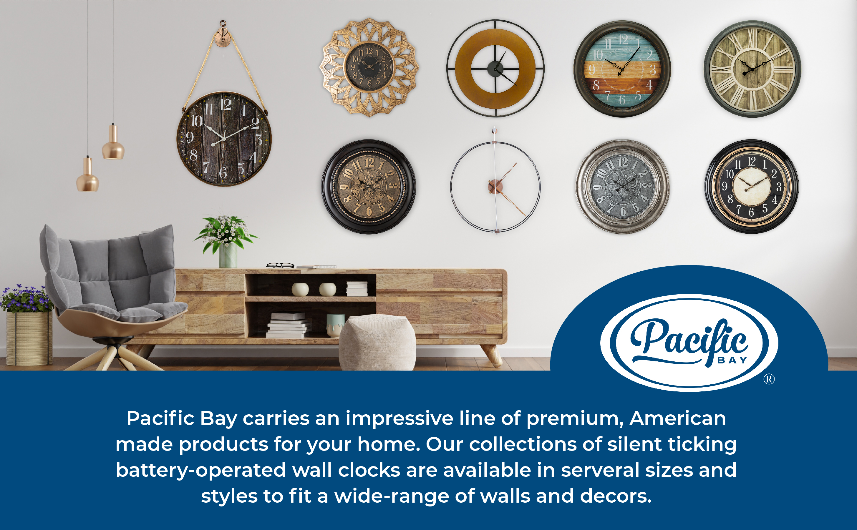فن الحائط | عبّر عن نفسك ببيان على الحائط الخاص بك مع ساعة الحائط المعلقة من باسيفيك باي واعرض عملاً فنياً يتطابق مع الديكور الخاص بك في أي غرفة.