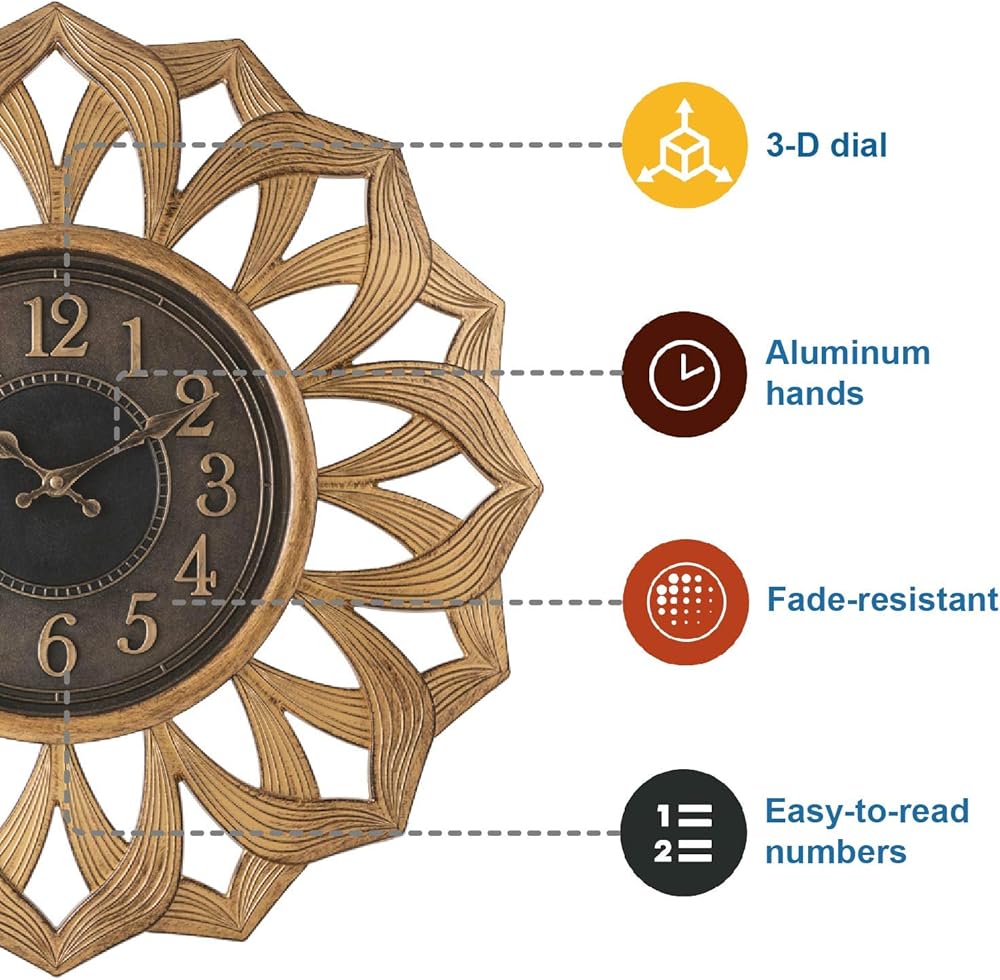 الضمان والعناية | ساعتك مدعومة بضمان لمدة عام واحد. تتطلب بطارية AA واحدة، ويتم تعليقها بسهولة على أي حائط. هيكل قوي يحافظ على الغبار خارج الساعة حيث ينتمي إليه ويمكن تنظيفه بسهولة. يبلغ قطر الساعة 50.8 سم مع وجه بقطر 24.13 سم.