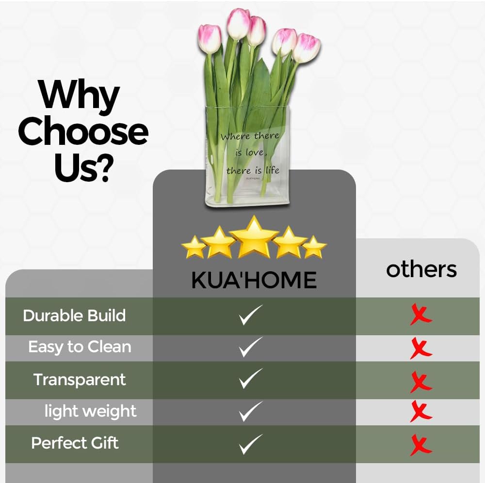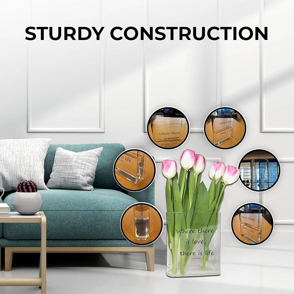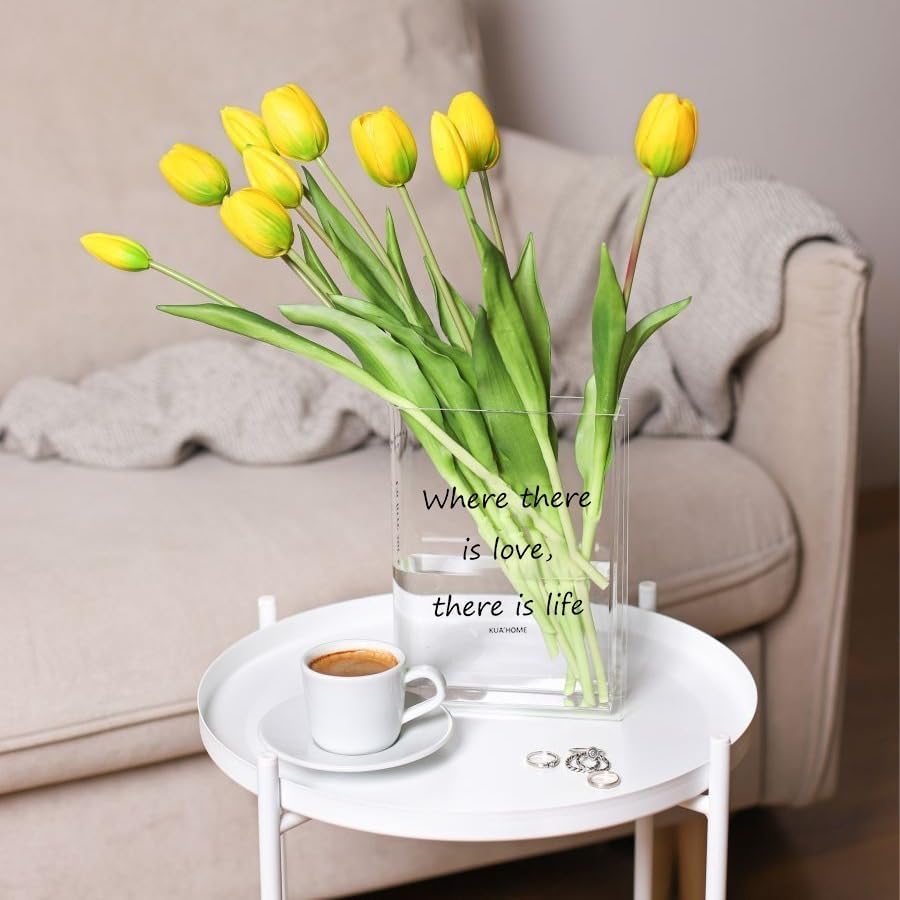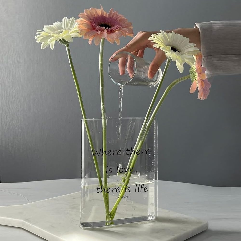 مزهرية كتاب شفافة من الأكريليك من KUA'HOME مزهرية على شكل كتاب شفاف مزهرية لسطح المكتب مزهرية جمالية لديكور الغرفة مزهرية زخرفية فنية | مثالية للهدايا أو ديكور المنزل (لون شفاف)