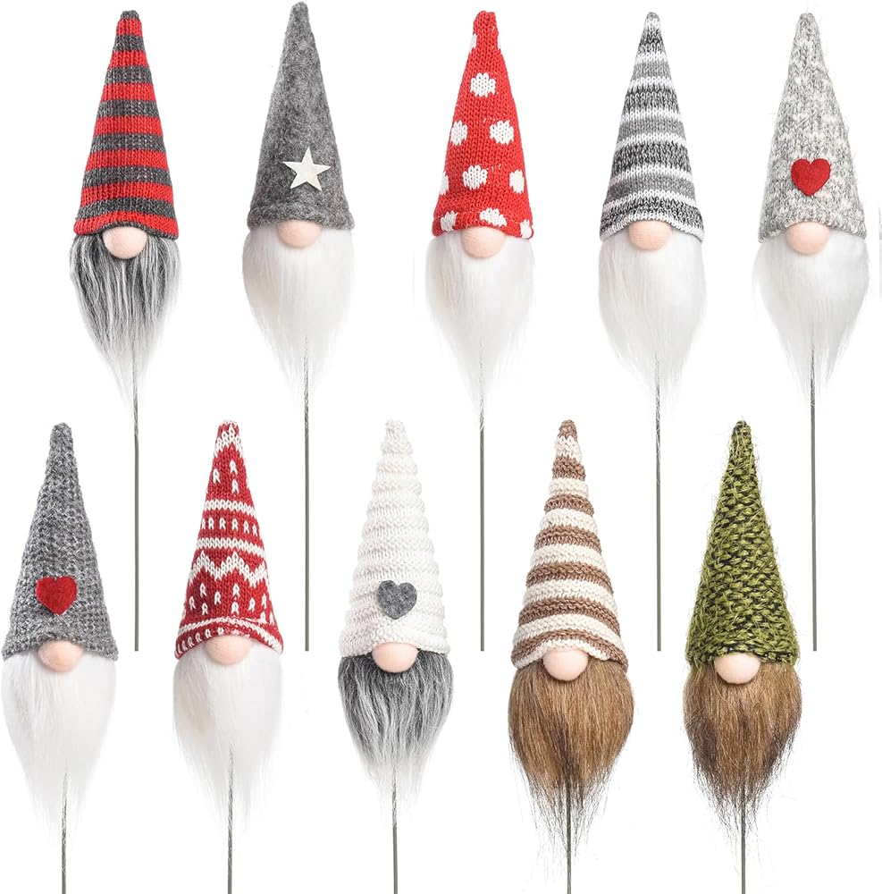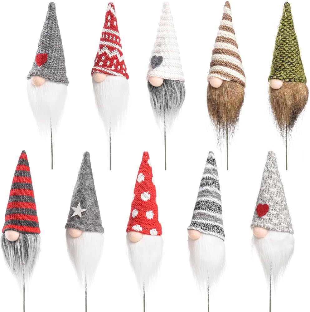 Funoasis 10PCS Indoor Mini Flower Bed Stakes Decorative,Flower Pot Decorative Gnomes Plush Christmas Gnome Signs Holiday Party Dining Table Kitchen Shelf Baking Decor