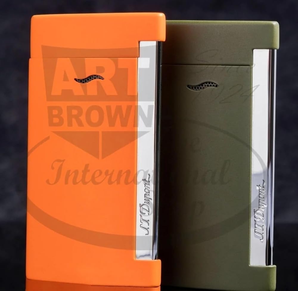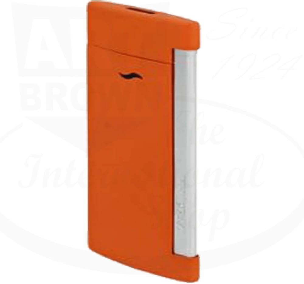 S.T. Dupont slim 7 in matte orange. THE WORLD'S SLIMMEST LUXURY LIGHTER In keeping with its tradition of excellence and innovation, S.T. Dupont is expanding its collection of luxury lighters with the new SLIM 7: the world's slimmest luxury lighter. Only 7mm thick, the SLIM 7 enters the world of ultra-thin technology products. Its clean design is particularly attractive to a new generation of consumers; Its light weight (45 grams) and slim form make it comfortable to hold and easy to slip into a pocket or handbag. Packed with technology, the SLIM 7 lighter features a powerful, wind-resistant torch flame suitable for all conditions. Practical for everyday use and suitable for both men and women, the SLIM 7 is available in a range of ten colours. The SLIM 7 lighter is, without a doubt, a great gift idea for those who love accessories that combine design and functionality!