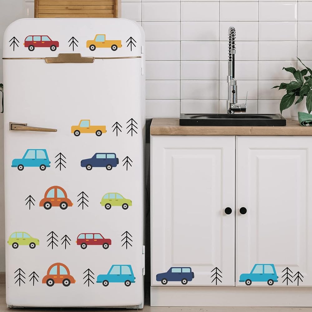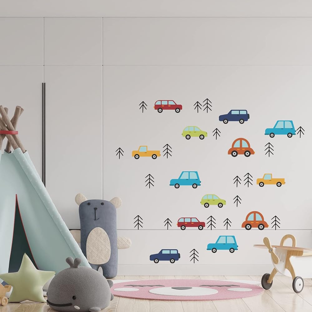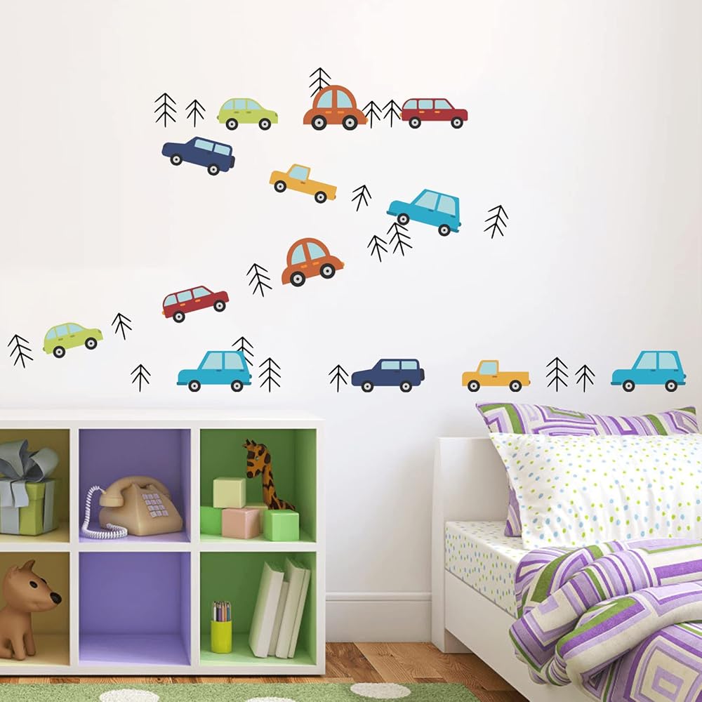 The colorful vehicle cars decal stickers are designed by our professional designers team. Great for baby nursery wall decor, daycare, bathroom, boys bedroom decor, apartments and dorms wall decor.