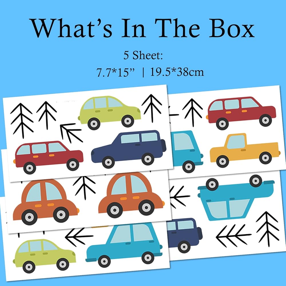 ►Package includes 5 sheet of car wall decals, every car decal is single pre-cut. Total 13 car stickers and some direction arrow decals and the length of the car stickers is 6"-7".