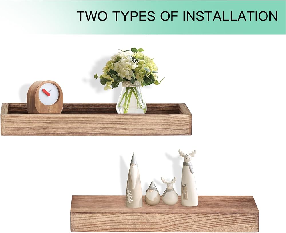 تصميم فريد: يعتمد الرف الخشبي العائم على تصميم أخدود لمنع سقوط الأشياء. تتميز حافة الرف بتصميم قوس منحني لمنع الخدوش الناجمة عن الزوايا الحادة. هناك طريقتان لتركيب هذا الرف العائم يمكنك تجميعهما وفقًا لتفضيلاتك.