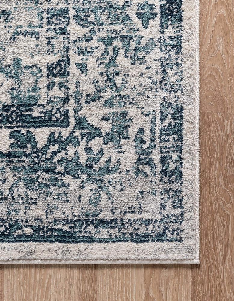 Soothing vintage style for all! The Charleston Collection combines contemporary colors and a range of patterns from traditional medallions to modern all-over designs into an undeniably playful package. Calming blues, pinks, and greens and a gently distressed texture gives these rugs a chic, lived-in look that works in both casual and more formal settings. The medium-height 1/3" polypropylene pile is soft underfoot and easy to clean, perfect for medium to low traffic areas like living rooms, home offices and bedrooms.