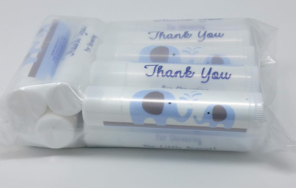 بلسم شفاه فيل بيبي شاور بلمس: بلسم الشفاه يمثل هدايا رائعة لأي مناسبة. إنها هدية عملية يمكن للجميع استخدامها! تتميز مرطبات الشفاه هذه بالألوان الأزرق الفاتح والرمادي وتتميز بوجود فيل للأم والطفل. سوف تحصل على 12 بلسم شفاه لكل طلب. مستحضرات مرطب الشفاه الخاصة بنا طبيعية بالكامل، مما يوفر نتائج مذهلة! النكهة رائعة لكل من الرجال والنساء! مصنوع من زيت فول الصويا وزيت عباد الشمس وشمع العسل وزيت القنب وزيت الأفوكادو وزيت الجوجوبا وزبدة الكاكاو وزبدة الشيا وفيتامين هـ وخلاصة الصبار ومرطبات الشفاه التي نقدمها تغذي الشفاه وتنعمها. كما أنها تحتوي على عامل حماية من الشمس قدره 15!